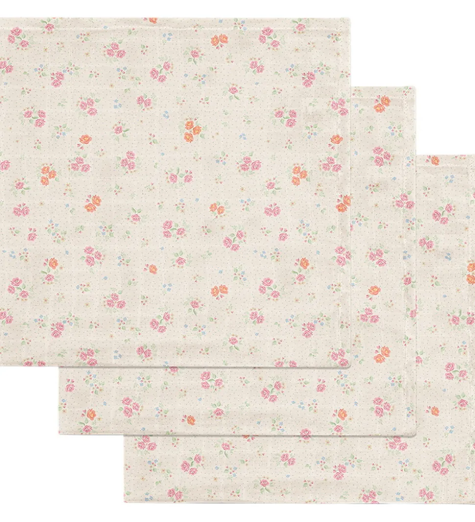 Bløde Konges Sløjd stofbleer solgt i en 3-pak i råhvid med små, blå prikker og blomsterprint i skønne farver.