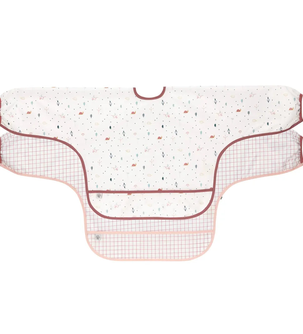 Lässig forklæderne har lange ærmer og fortil er der en lomme i bunden til at opsamle spildt mad og drikke. I armåbningerne er der smalle elastikkanter.