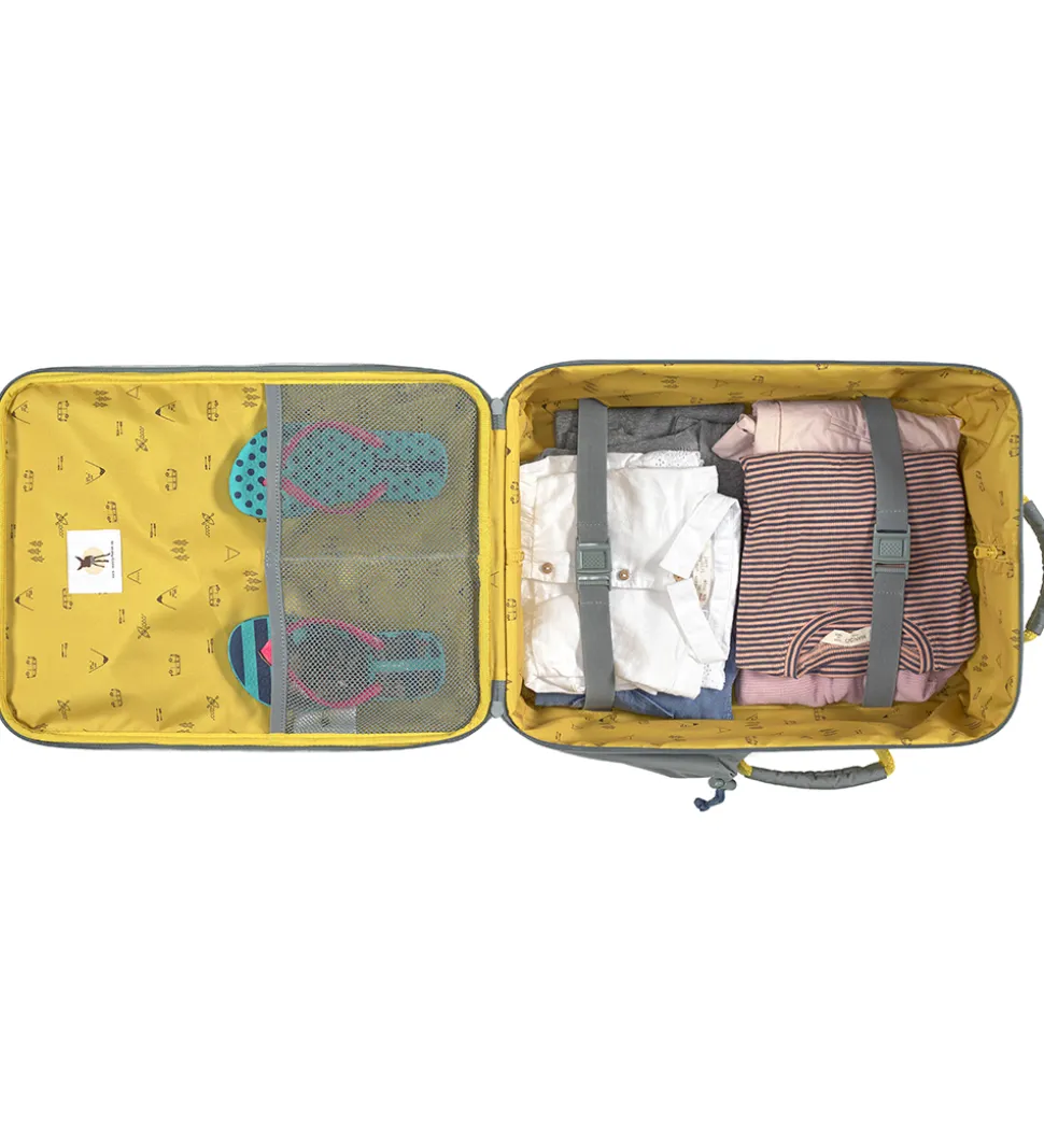 Lässig kufferten har en smart størrelse til opbevaring og transport og er udstyret med hjul for nem bevægelse. Indeni består den har ét stort rum, med en ekstra pose til f.eks. gymnastiktøj, samt er der to små mesh lommer på låget. Kufferten har smarte hanke på både siden og i toppen så den er nem at løfte, og så har den en lomme til drikkedunken.