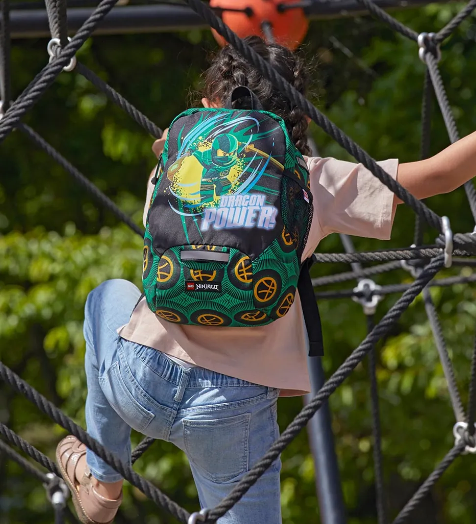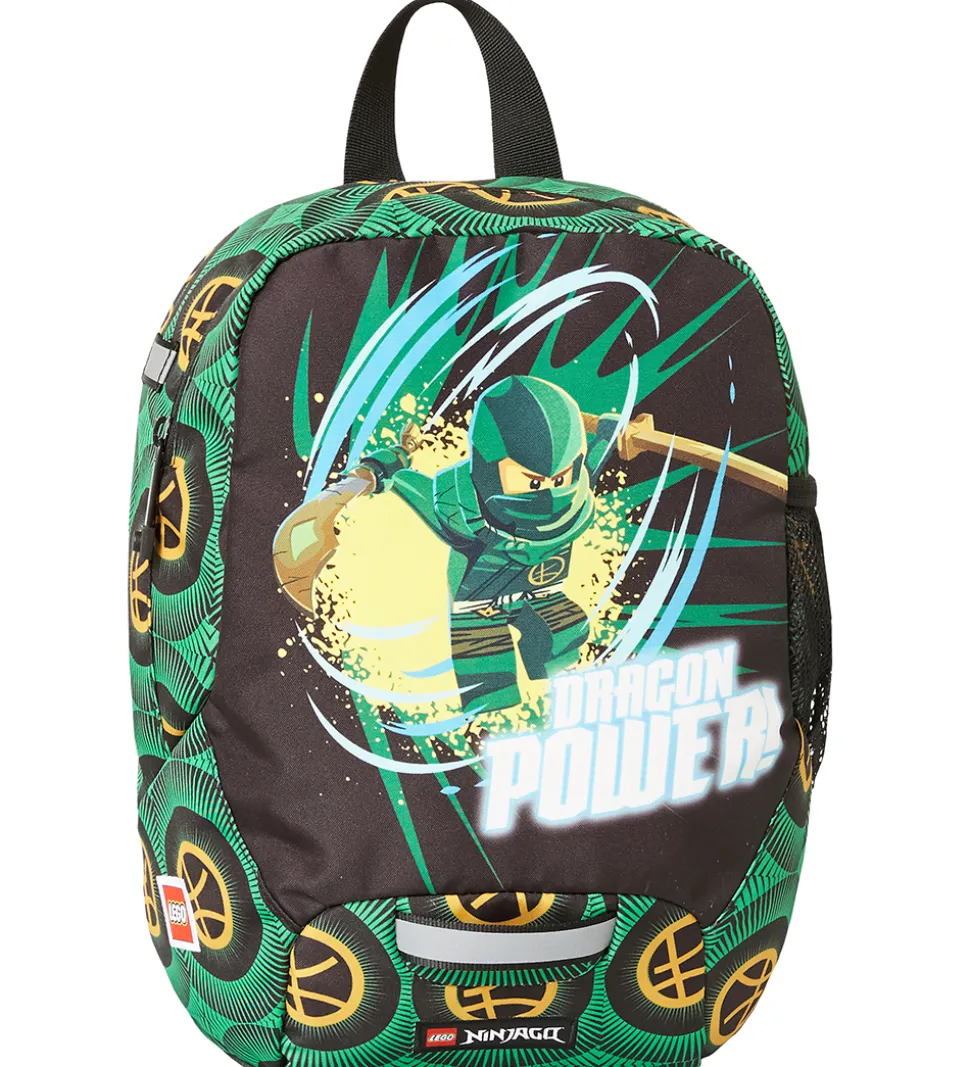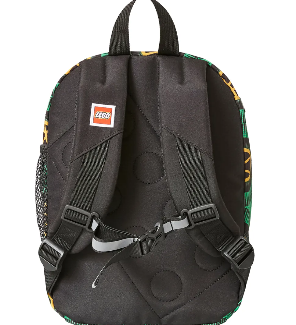 Sej LEGO® børnehavetaske i sort og grøn med Ninjago-print.