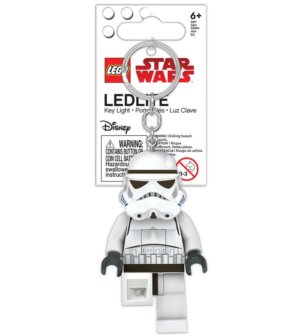 LEGO® Star Wars nøgleringen kan bruges som en smart lommelygte ved at trykke på maven. Den har en kæde med en spiralring, så den nemt kan hænges på eksempelvis skoletasken eller sammen med nøglerne. LEGO® figuren kan bevæge hoved, arme og ben.
