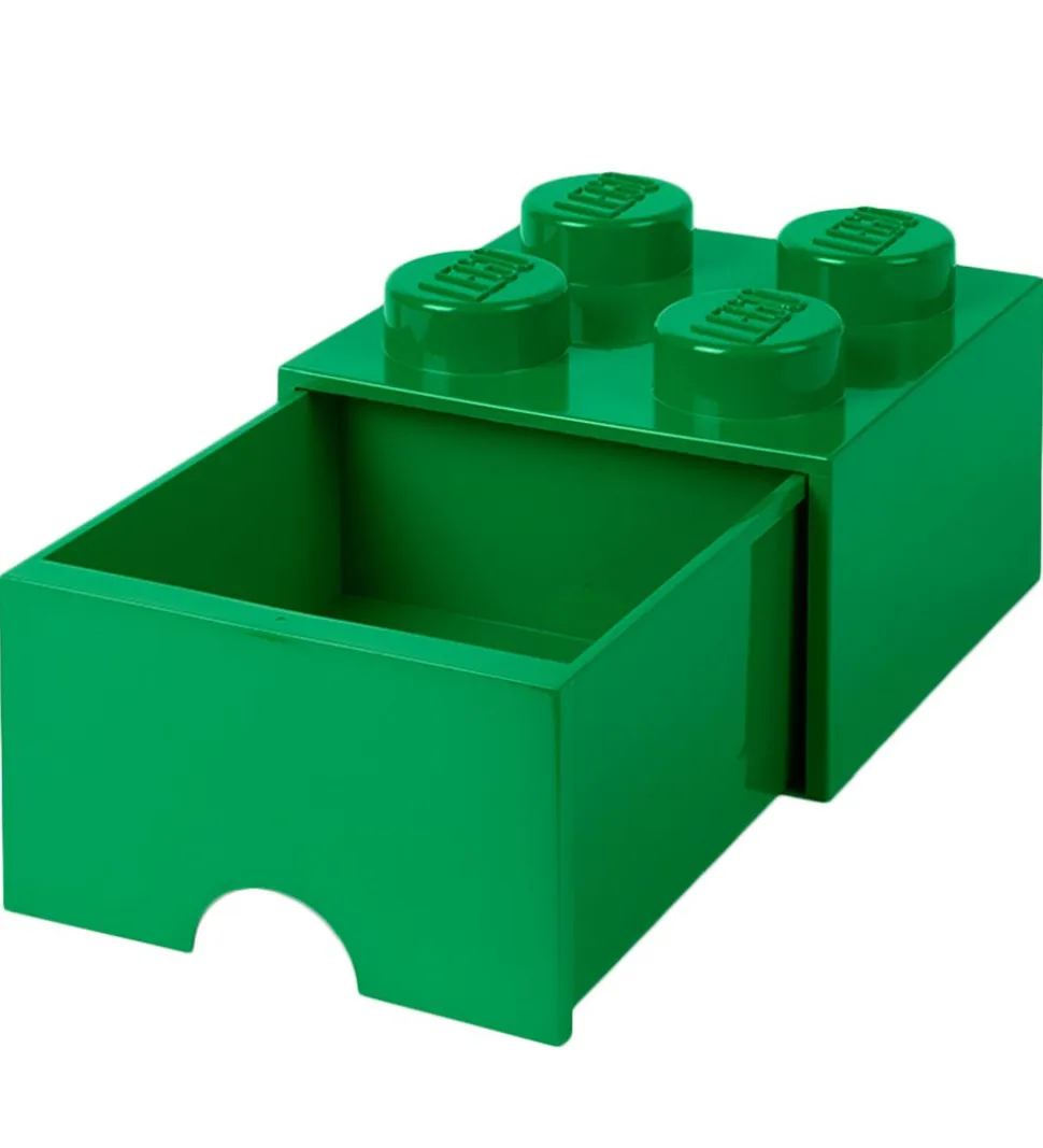 Flot LEGO® Storage skuffe formet som en LEGO® klods i grøn med fire knopper på toppen.