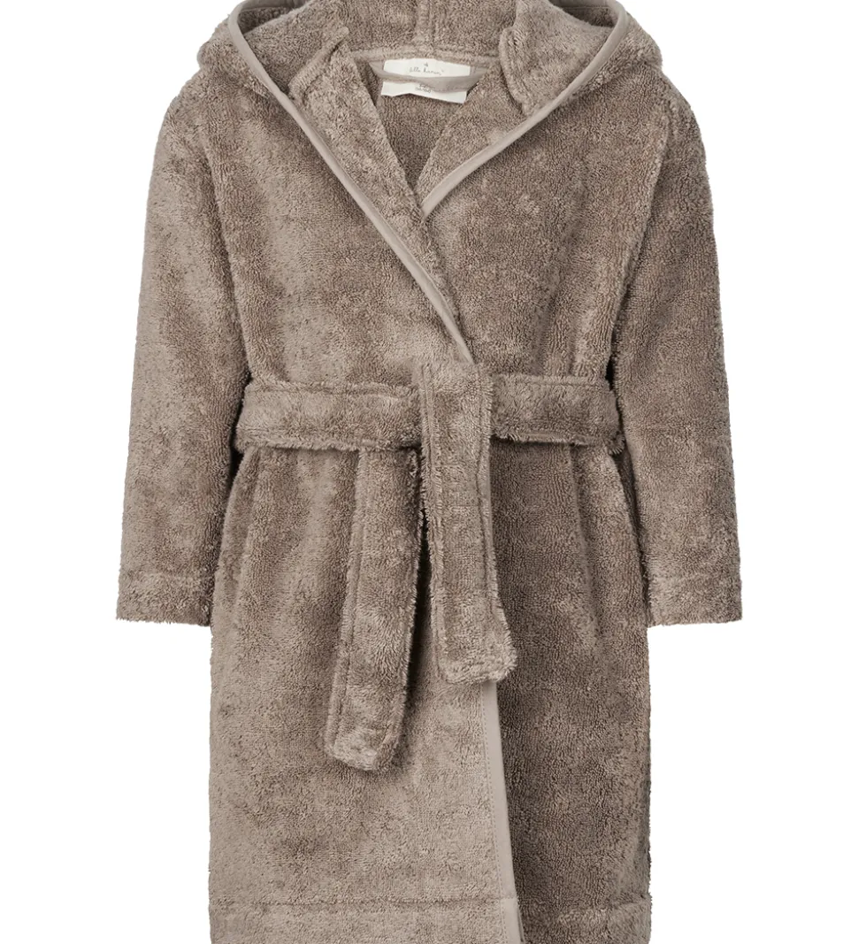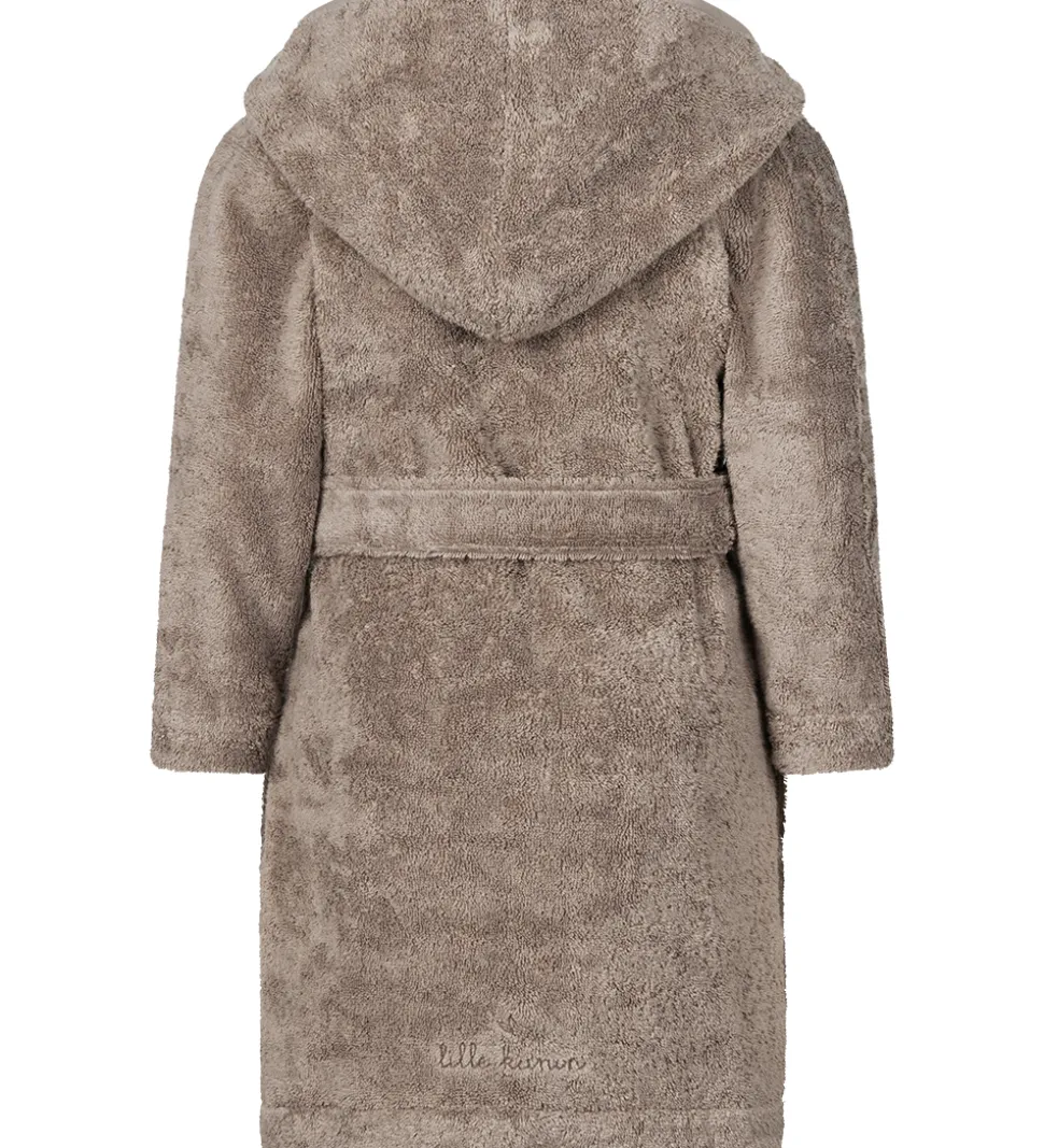 Flot Lille Kanin badekåbe i ensartet gråbrun med et broderet, diskret logo.