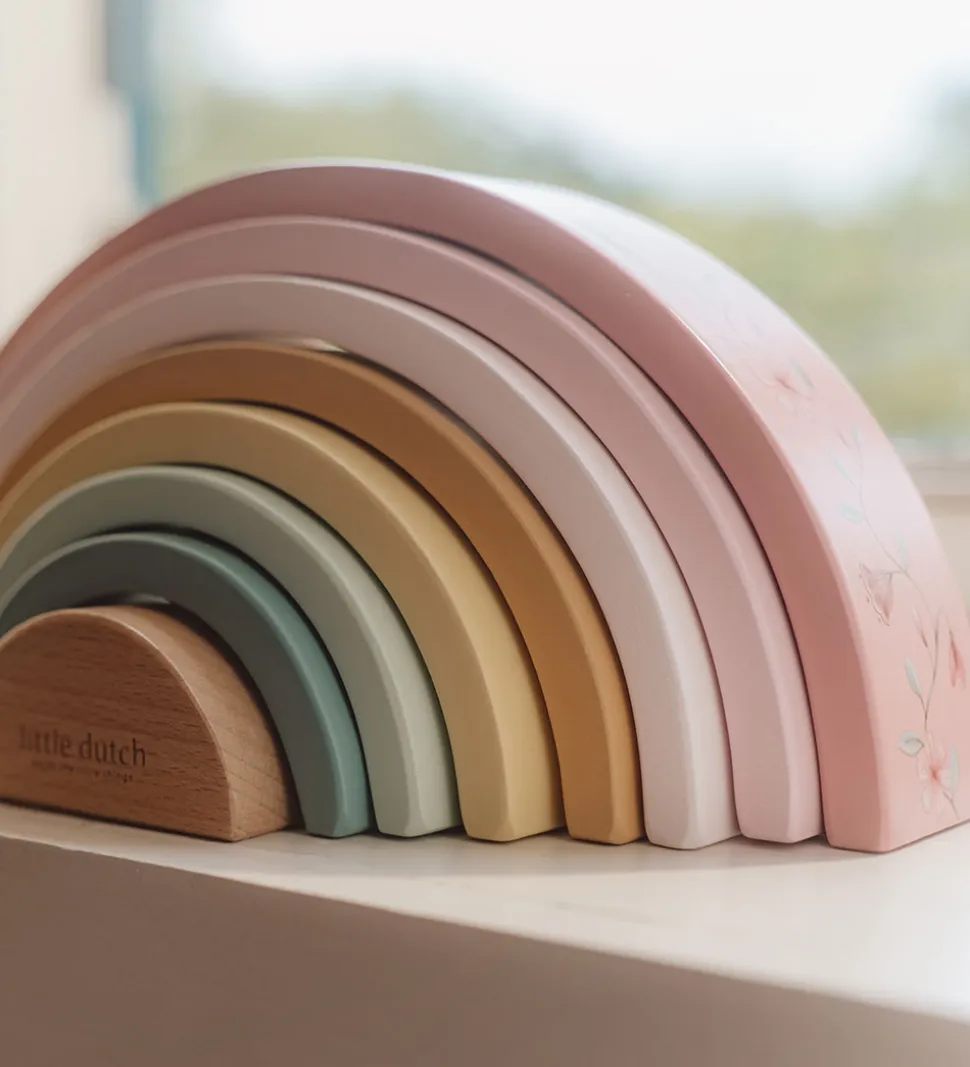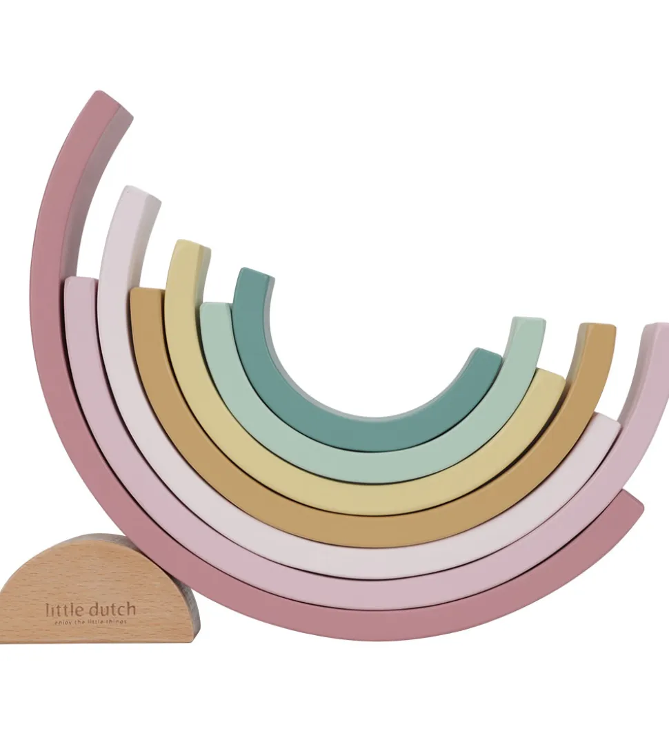 Charmerende Little Dutch legetøj i form af otte farverige buer, som tilsammen danner en regnbue.