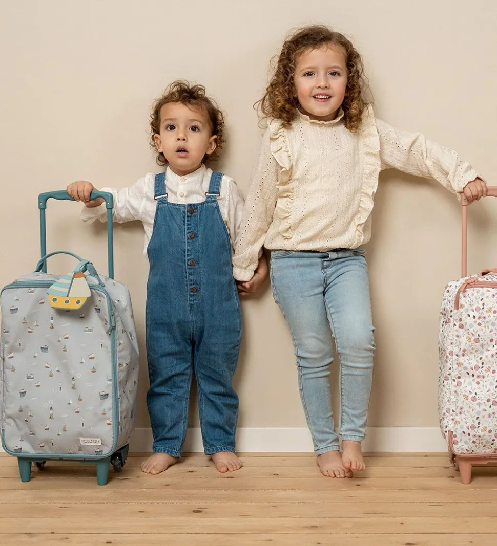 Skøn Little Dutch trolley i lyseblå med allover print af skibe og fyrtårne i fine farver. Alle kanter er blå.