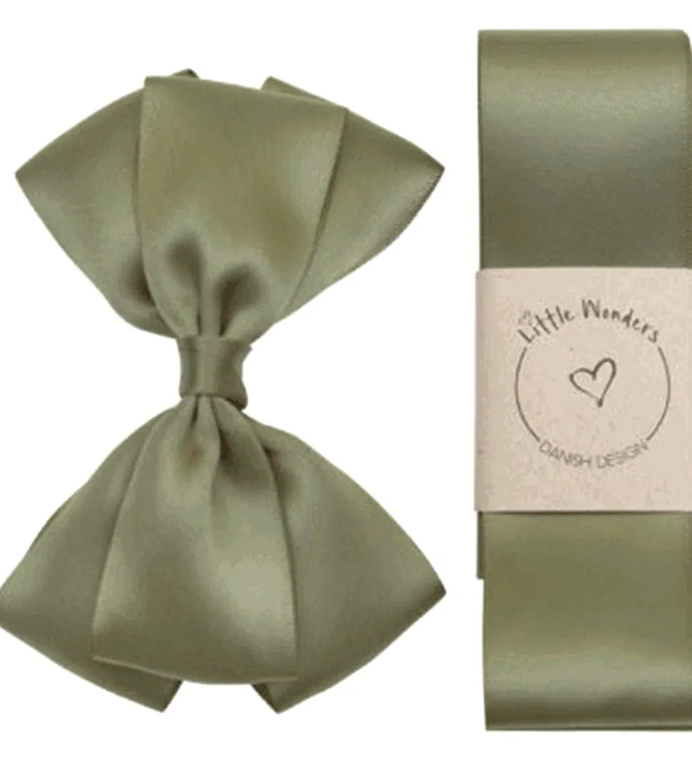 Fint Little Wonders dåbsbånd med sløjfe i ensfarvet armygrøn.