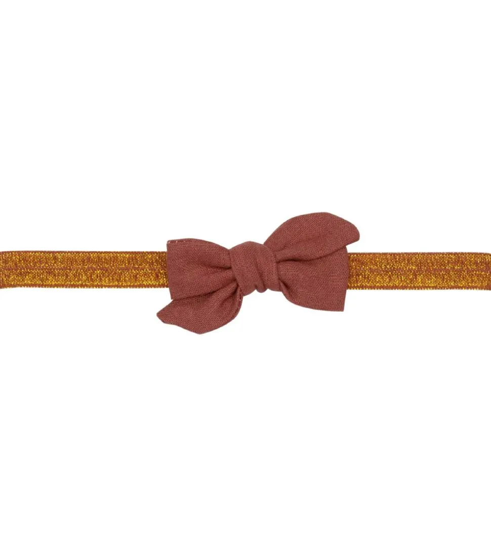 Sødt Little Wonders hårbånd i brun, med guldglimmer på båndet. Fortil er der en fin sløjfe.