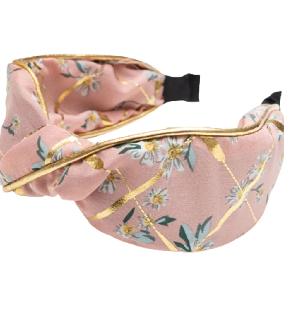 Yndig Little Wonders hårbøjle i støvet rosa med fint blomsterprint samt flotte guld-detaljer.