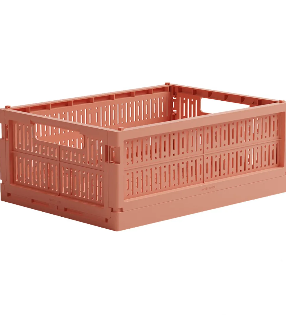 Made Crate foldekassen samles ved at klikke alle hjørnerne sammen, og den foldes nemt sammen igen. Foldekassen kan bruges til opbevaring af f.eks. kreating, tøj, nips, legetøj, plejeprodukter og eller noget helt andet. I begge ender er der praktiske håndtag, og foldekassen kan stables med flere af samme størrelse.