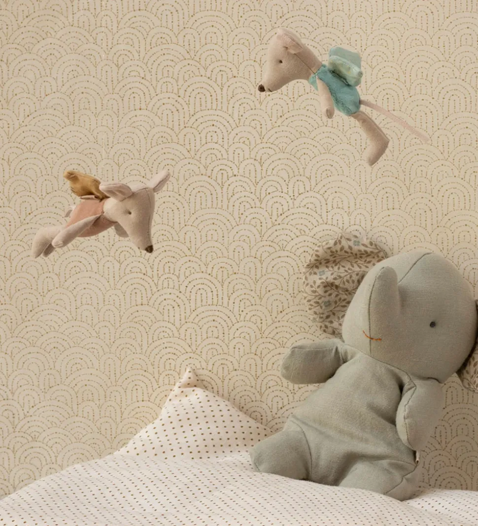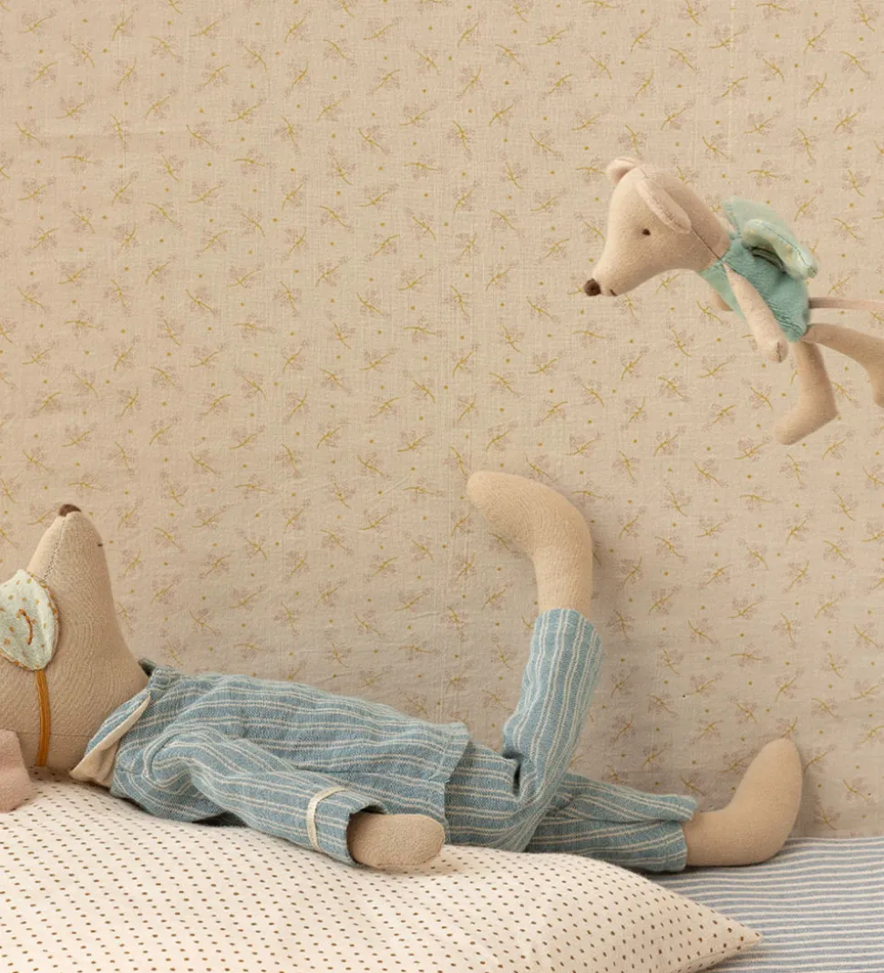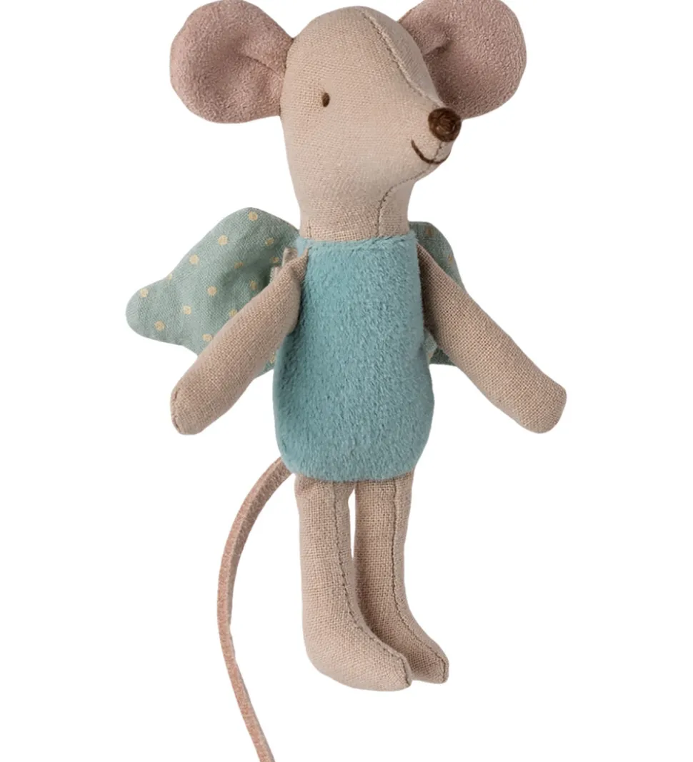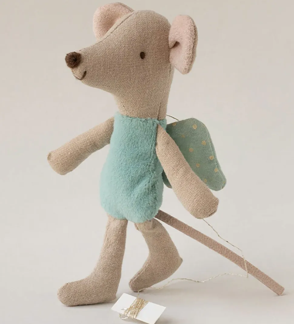 Flot Maileg bamse formet som en beige fe-mus med en mintblå velourkrop og med prikkede vinger.