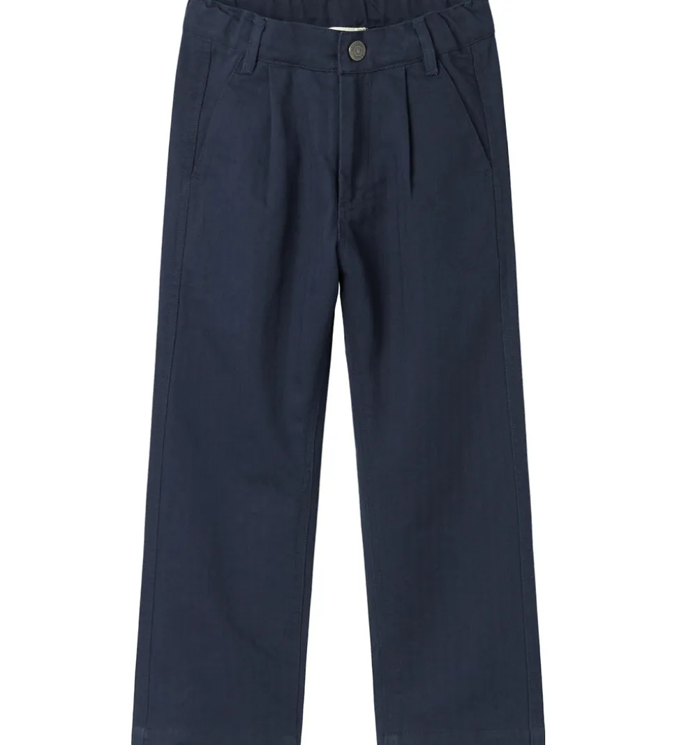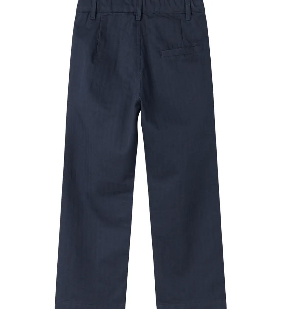 Stilrene bukser fra MarMar i en klassisk mørkeblå farve. MarMar bukserne har en enkel lukning med knap og lynlås samt to diskrete sidelommer. Taljen er elastisk, hvilket giver en behagelig pasform. Buksebenene er lige, hvilket giver et tidløst look, der passer til forskellige lejligheder. Der er ingen print eller mønster, hvilket bevarer det enkle design.