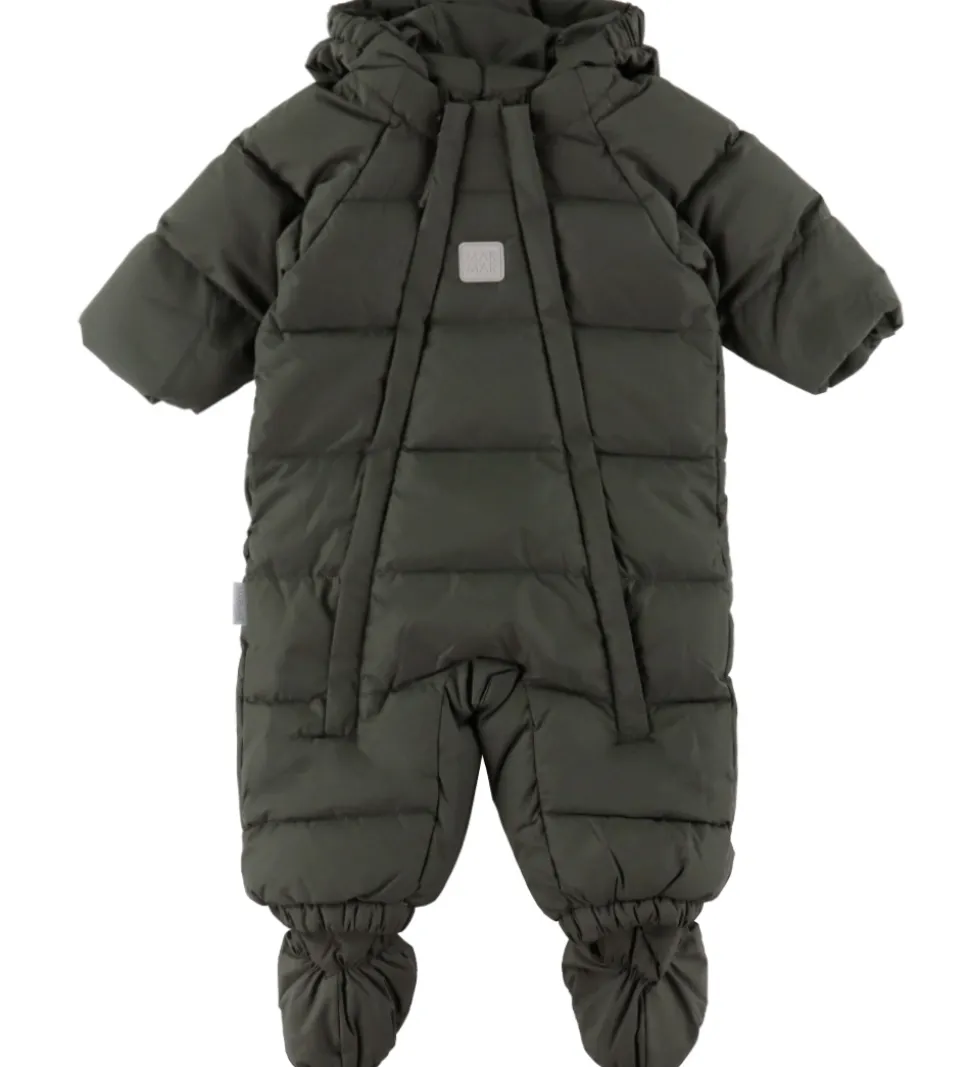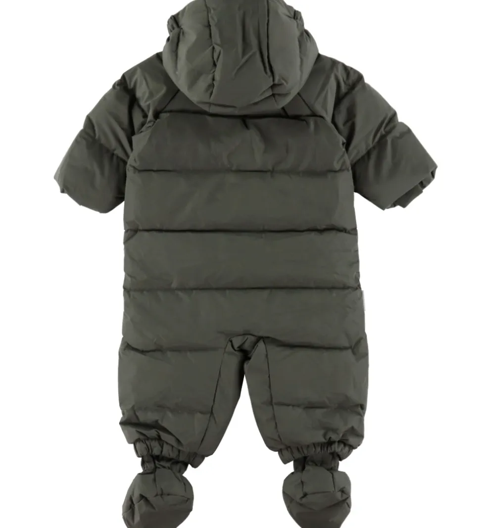 Fin MarMar flyverdragt i mørkegrå med grønt skær. Flyverdragten har vandrette syninger og en grå logoapplikation fortil.