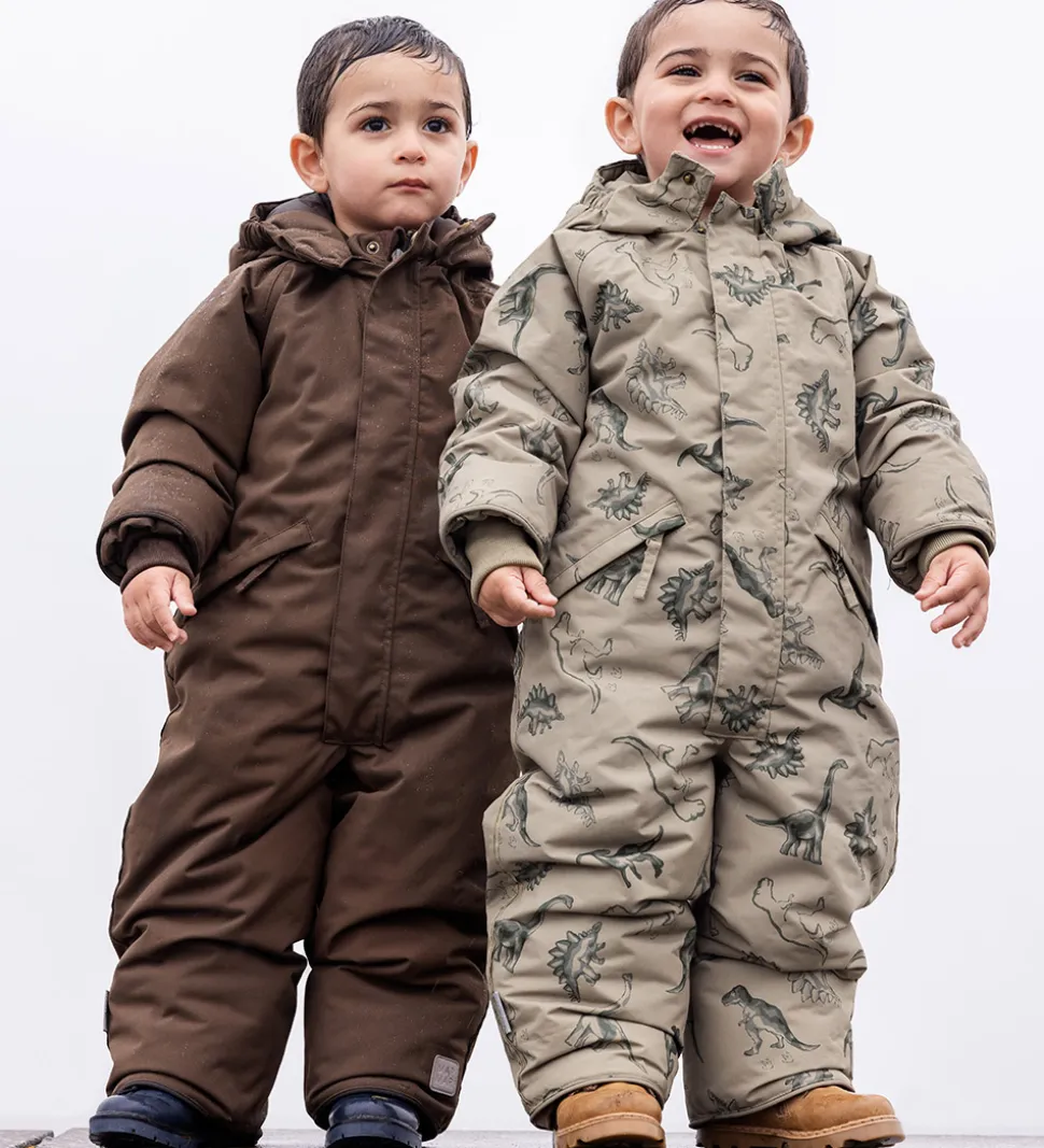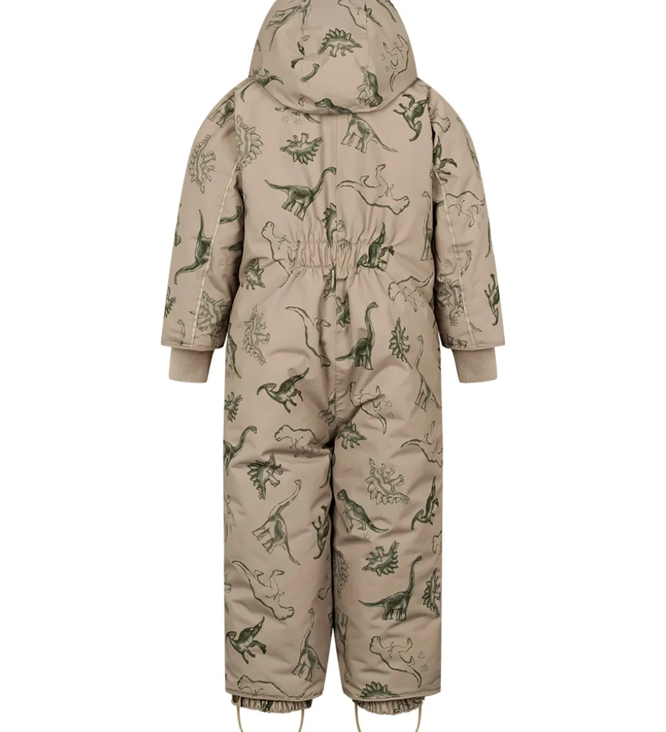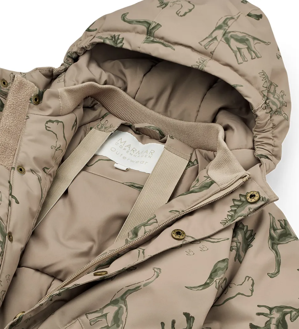 Skøn MarMar flyverdragt i lysegrøn med et alloverprint af dinosaurer i grønne nuancer. Flyverdragten har praktiske refleksdetaljer.