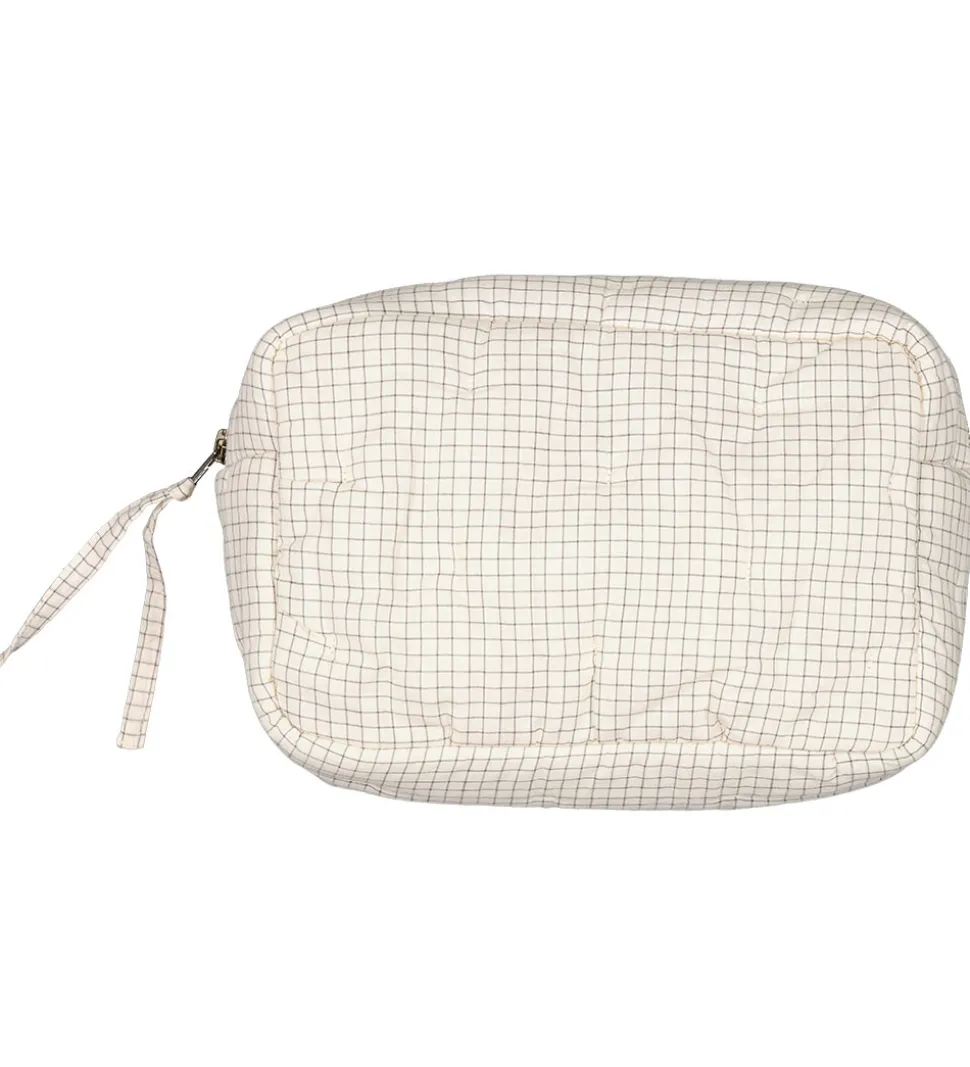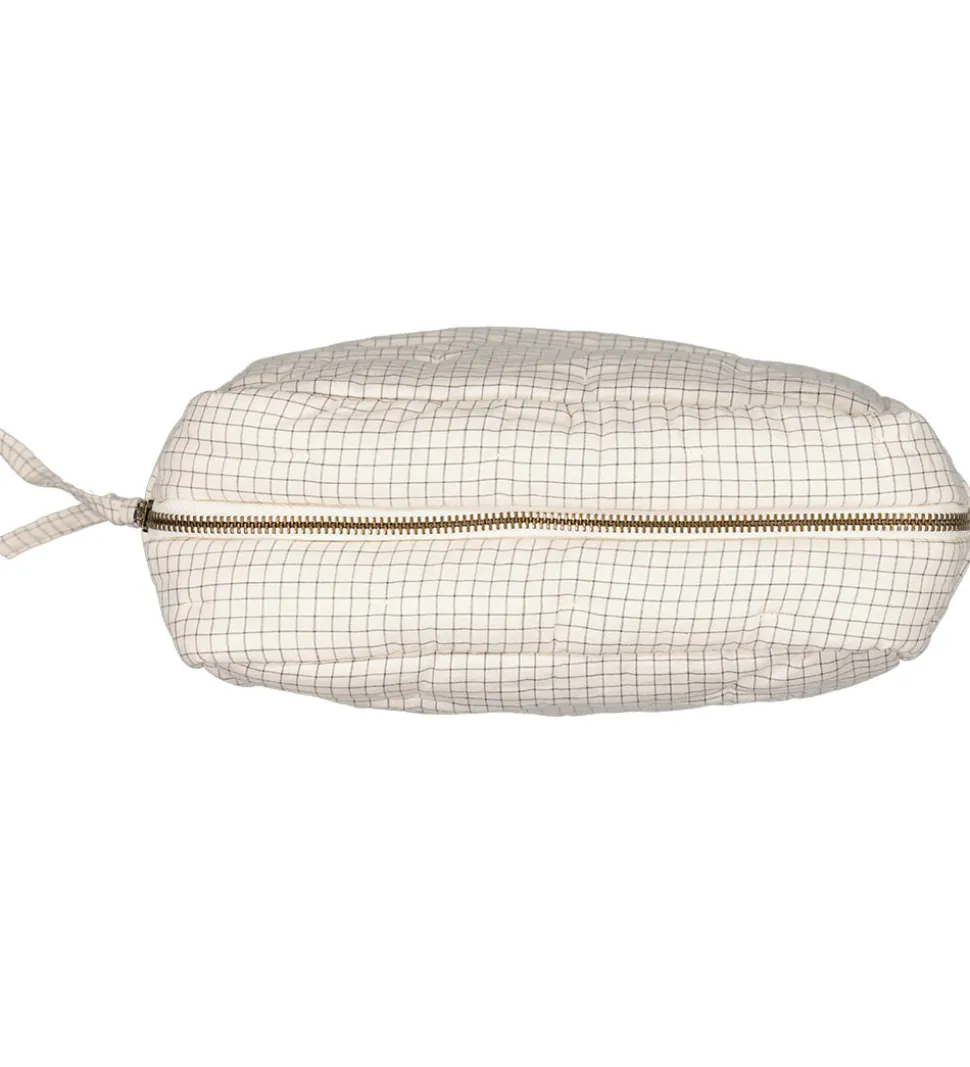 Flot MarMar toilettaske i hvide med et ternet mønster i navy, og den er blødt vatteret.
