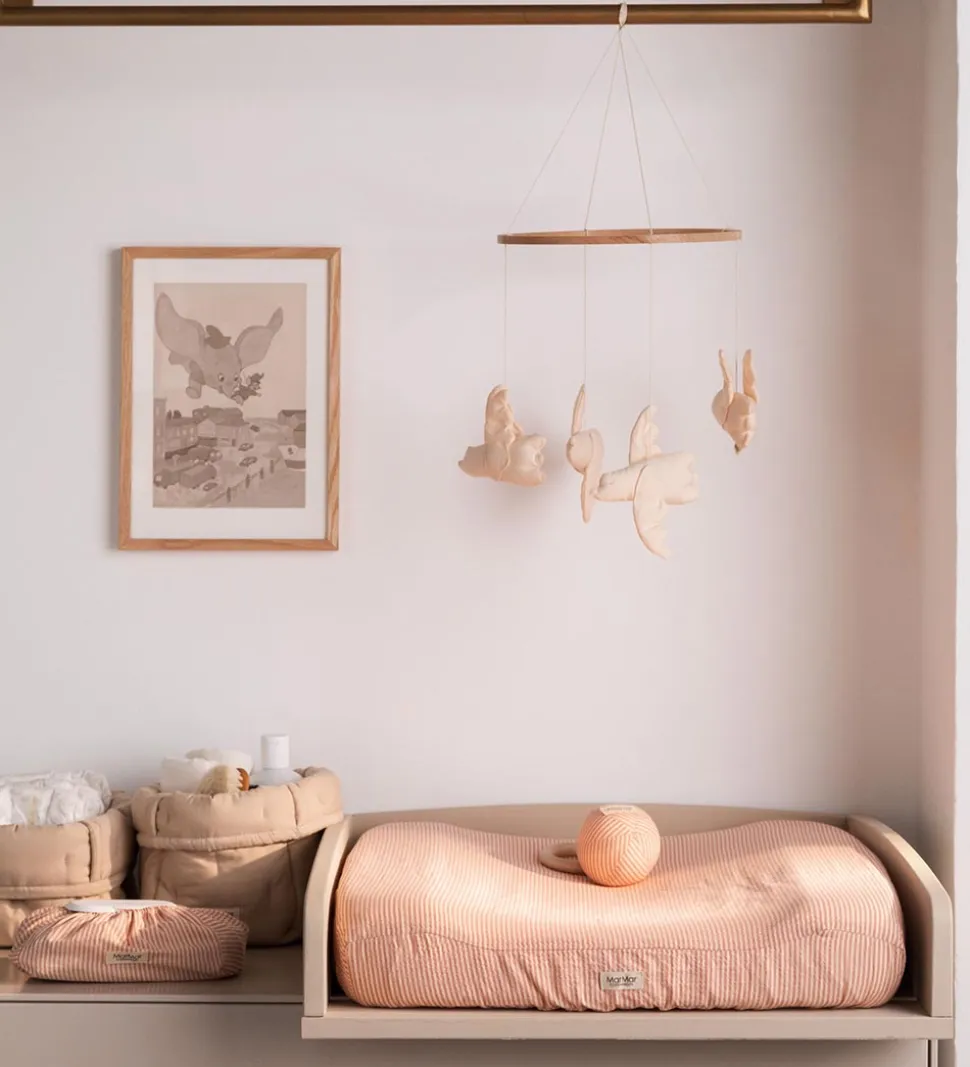 Smart MarMar vådserviet etui i beige med rosa stribe og lidt struktur i stoffet.