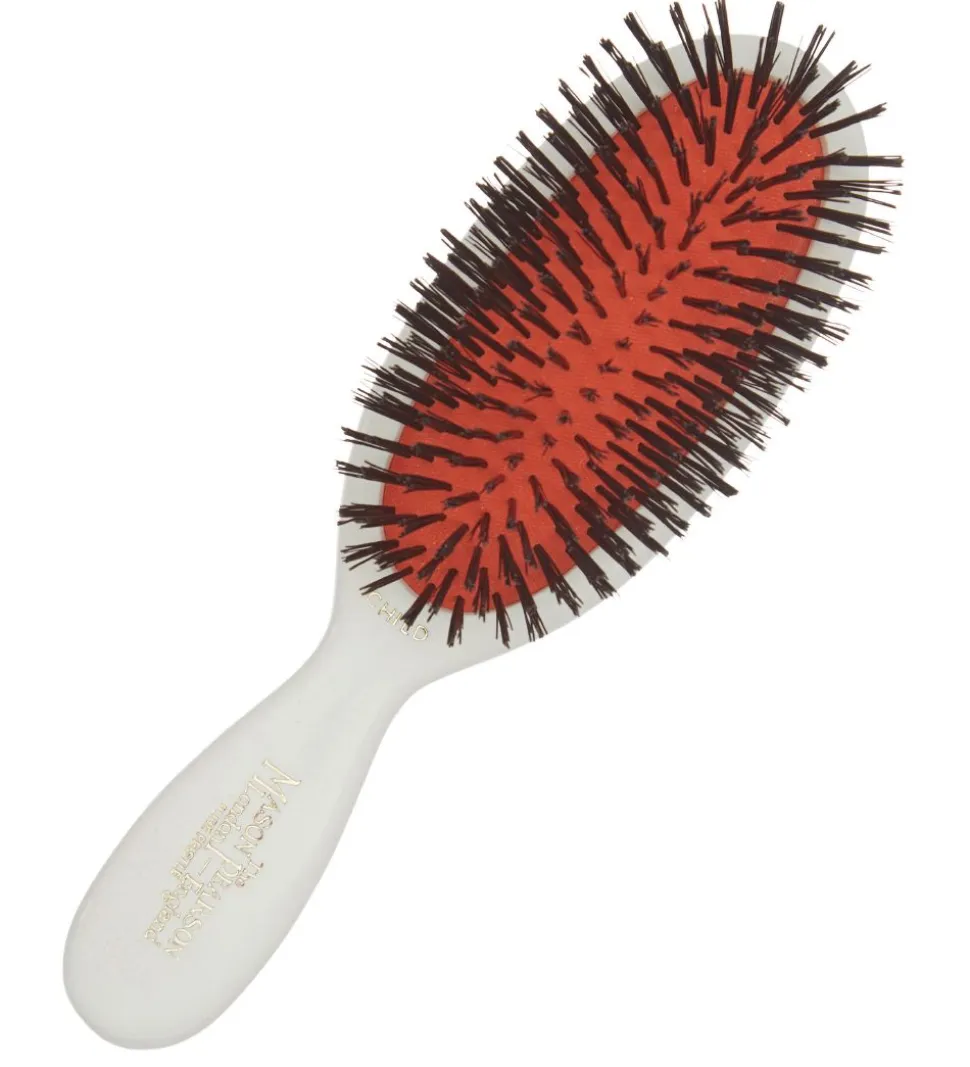 Mason Pearson børsten har bløde og skånsomme vildsvinehår, der lader den glide let igennem det filtrede hår. Hårbørstens hår er designet specielt til at give silkeblødt, og medgørligt hår. Børstehårene har forskelliges størrelser, så de effektivt masserer hovedbunden og transporterer hårets naturlige olier ud i længderne, samtidig med at give håret et glansfuldt finish.