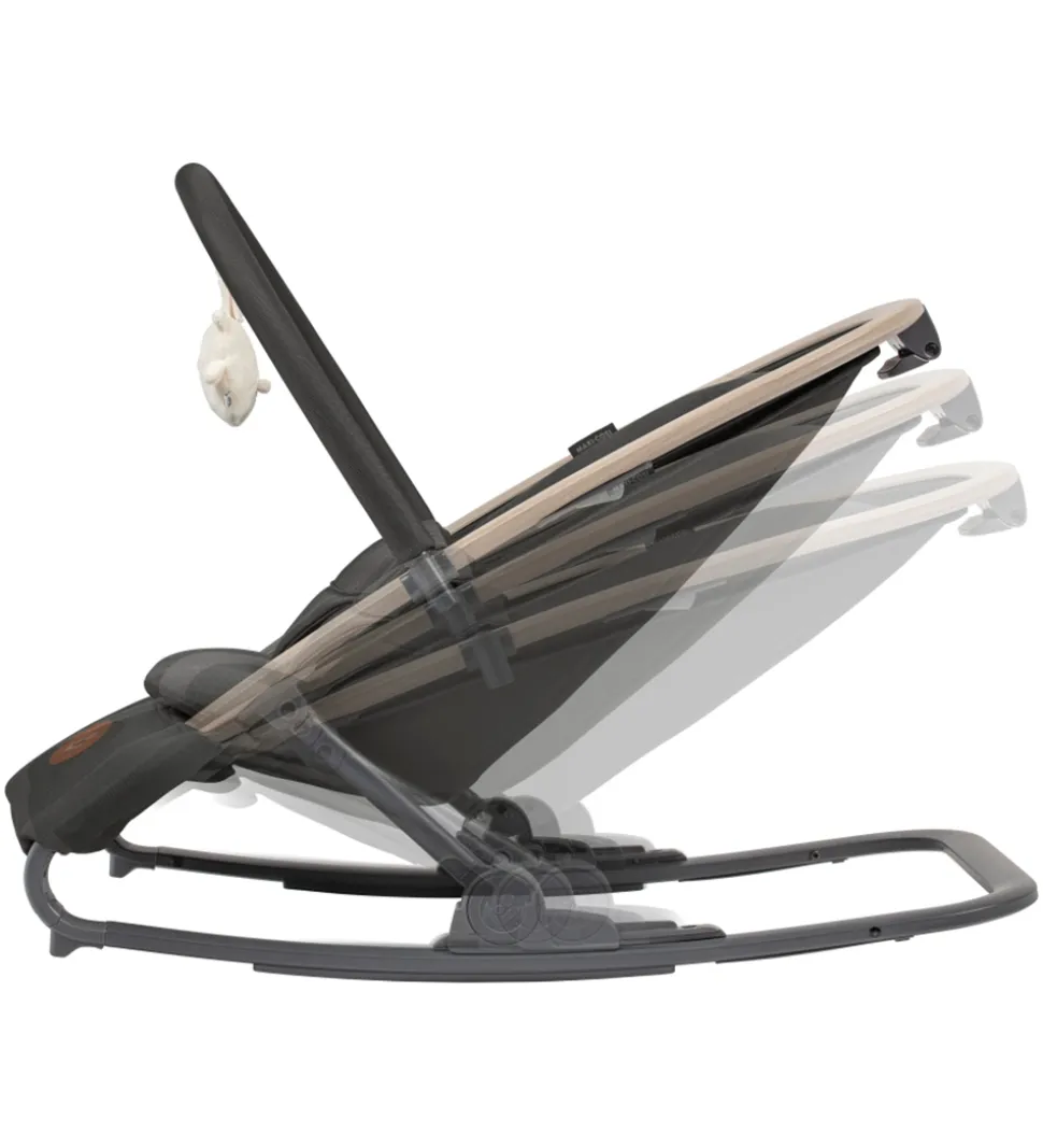 Med et enkelt greb kan man skifte mellem 3 positioner med forskellig hældning, og man kan vælge, om skråstolen skal vippe, eller om den skal være stillestående. Der medfølger en bue med aktivitetslegetøj med forskellige strukturer.
