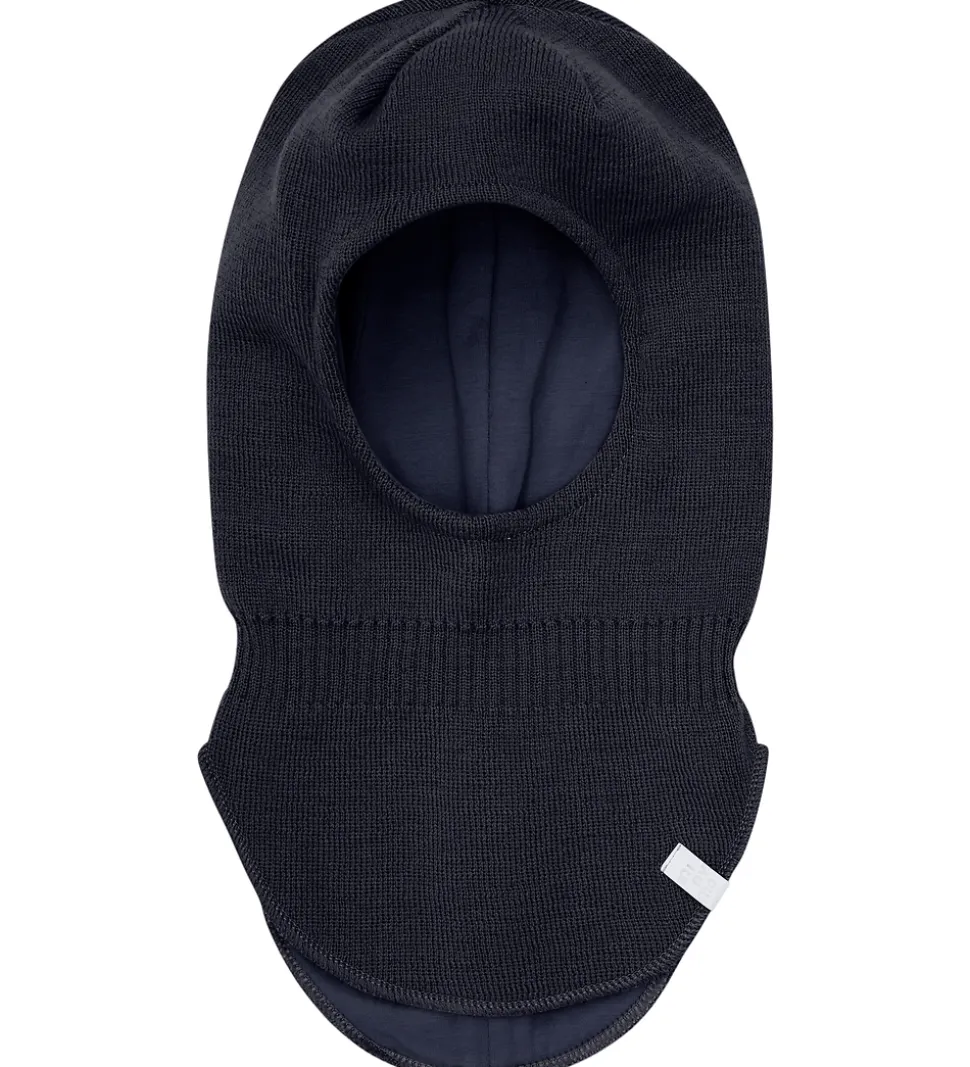 Lækker Minymo elefanthue i navyblå strik med en lille, refleks-logoapplikation ved halsen fortil.