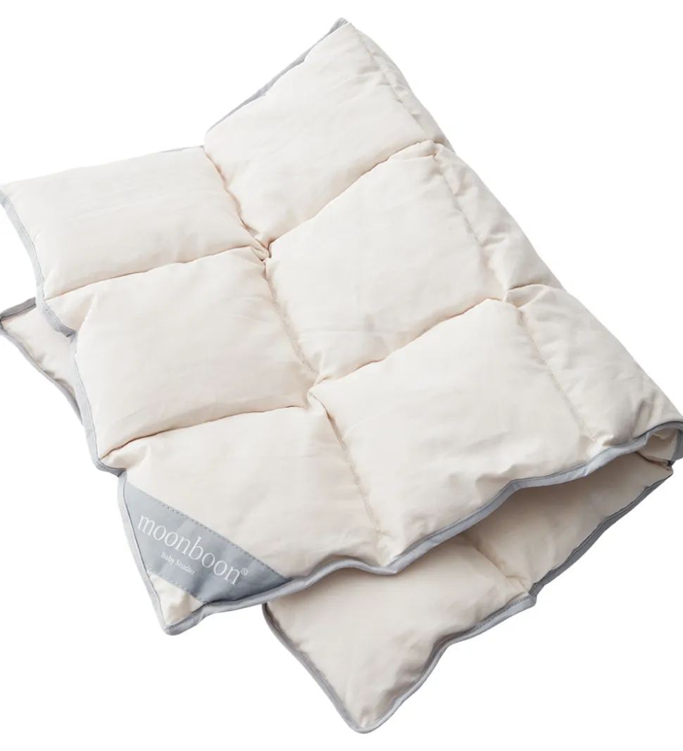 Moonboon dynen er perfekt til nyfødte og velegnet til brug i en Moonboon slyngevugge, tvillingeslyngevugge, vugge og i en barnevogn. Dynen er blød og lun med en yderside af økologisk bomuld og et fyld af kapok, som er et 100 % naturligt materiale, der også har antibakterielle og temperaturregulerende egenskaber.