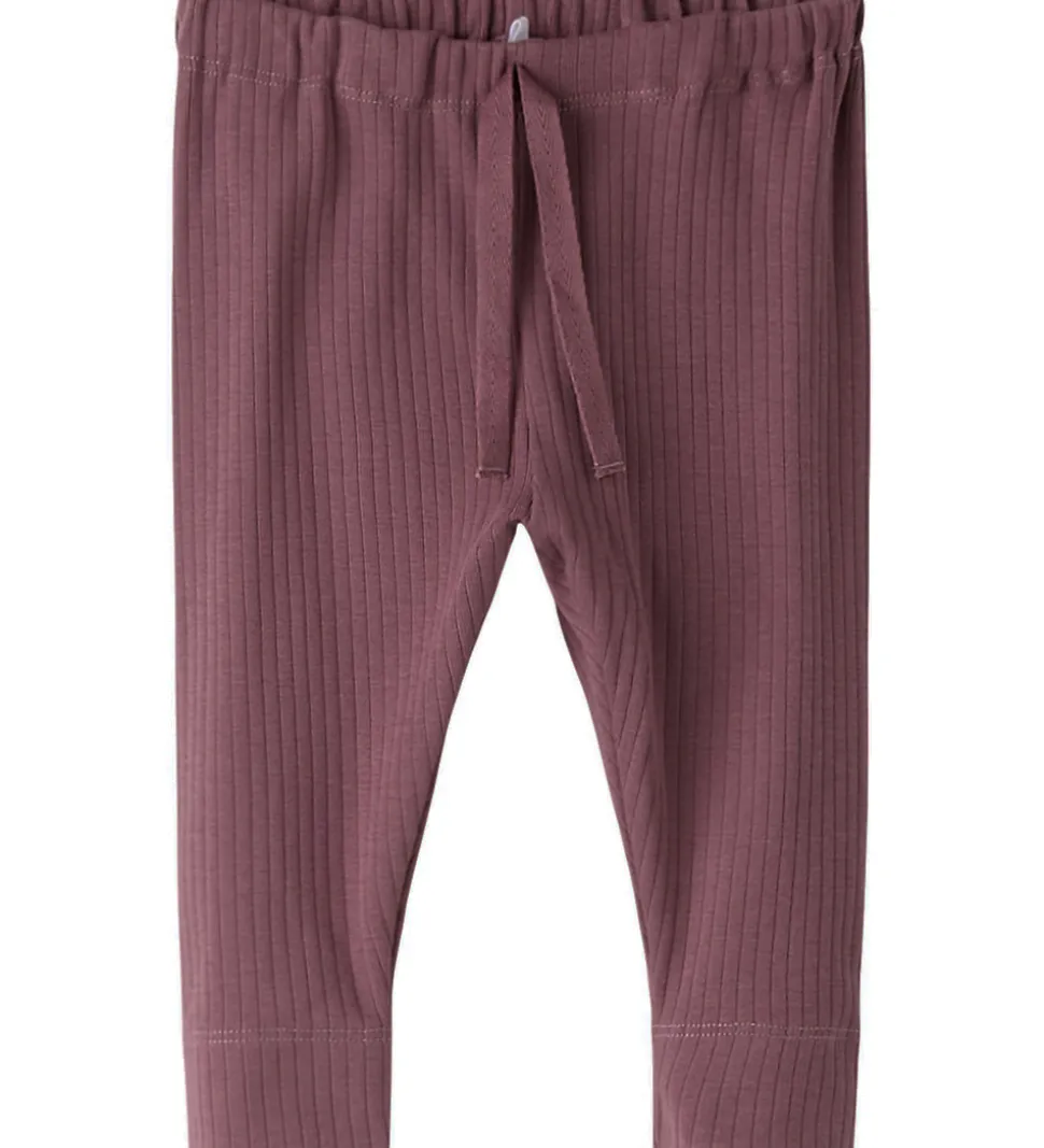 Flotte bukser fra Name It i lilla med ribstruktur. Name It bukserne er lavet med en elastisk talje, som kan justeres med knapper indvendigt. Fortil er der dekorative snører.
