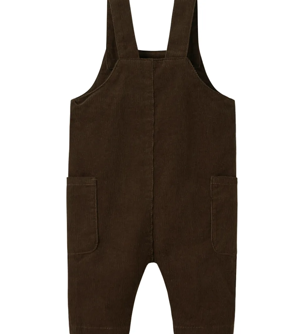 Name It smækbukserne er designet med brede skulderstropper, der kan justeres med knapper foran. Smækbukserne har to praktiske lommer på siderne og trykknapper mellem benene.