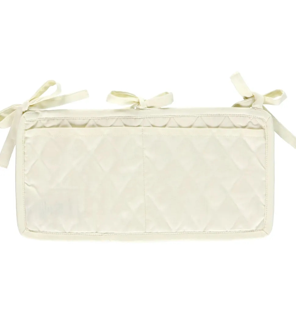 Petit by Sofie Schnoor sengelommen har to lommer på bagsiden, som kan bruges til bl.a. sutter, flasker, bøger, nusseklude og andre sengetidsnødvendigheder, så de altid er lige ved hånden. Sengelommen sættes fast på tremmesenge eller kravlegårdens tremmer med bindebånd.