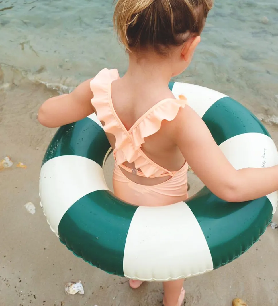 Petites Pommes baderingen gør tiden i vandet endnu sjovere for de mindste, og den er en perfekt følgesvend i poolen eller ved stranden. Baderingen er oppustelig med en praktisk ventil, som kan trykkes ind, og der medfølger et praktisk lappesæt i tilfælde af punktering.