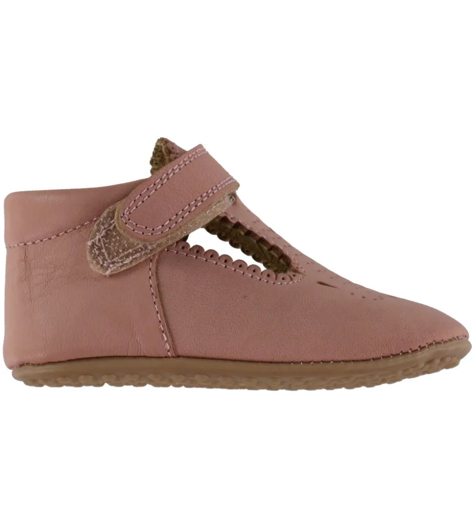 Fine Pom Pom ballerina hjemmesko af skind i støvet rosa og med fine bølgekanter og et flot hulmønster.