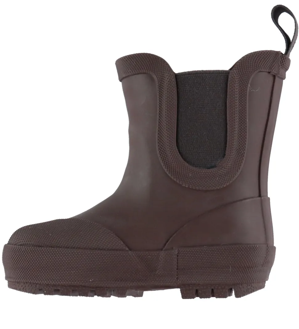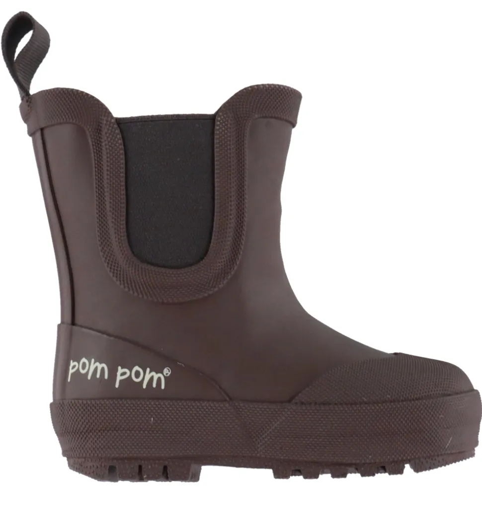 Lækre Pom Pom gummistøvler i ensfarvet mørkebrun.