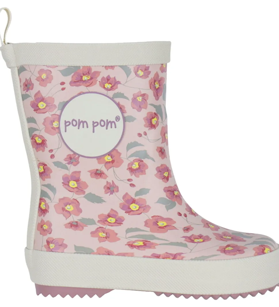 Pom Pom gummistøvlerne har et mellemhøjt skaft med en strop bagpå, så de er lette at få på. Indvendigt er der tekstil og udtagelige indersåler. Gummistøvlerne er meget fleksible med et skridmønster under bunden, som sikrer et godt fodfæste.
