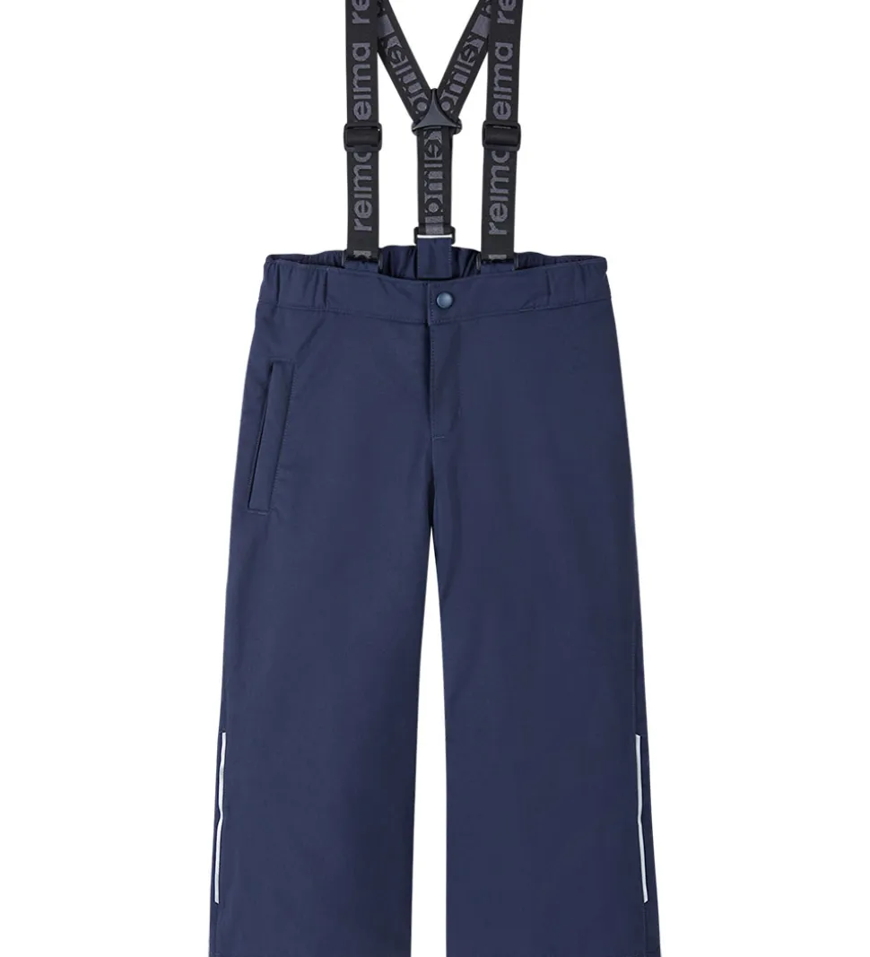 Reima skibukserne har justerbare, aftagelige seler, som fæstnes med velcro, og de samles på ryggen, så de sidder godt fast på skuldrene. I livet er der en indvendigt justerbar elastikkant, og skibukserne åbnes fortil med en tryknap og en lynlås. I siderne er der praktiske lommer, som lukkes med en skjult lynlås.