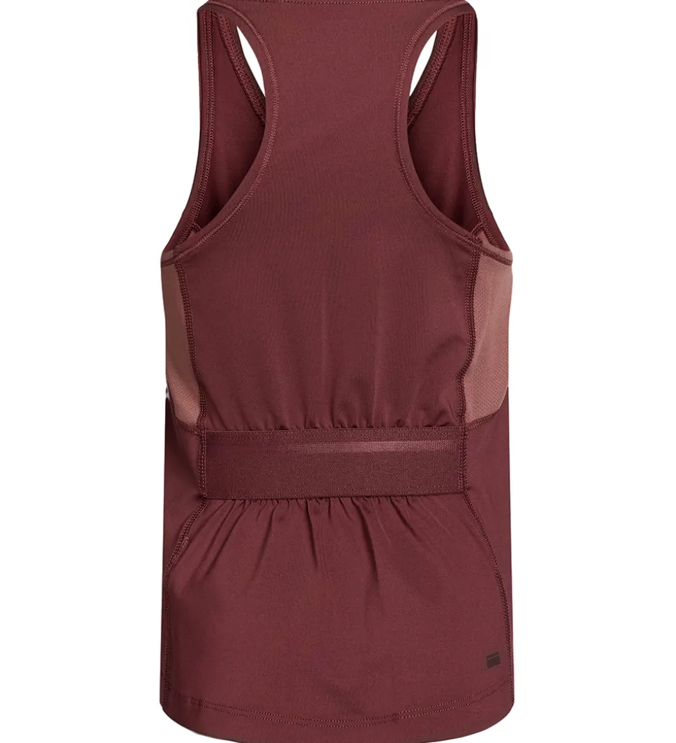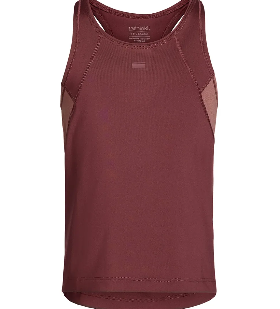 Flot Rethinkit tanktop i ensfarvet bordeauxrød i en sporty kvalitet og med meshdetaljer i siderne i gammelrosa.