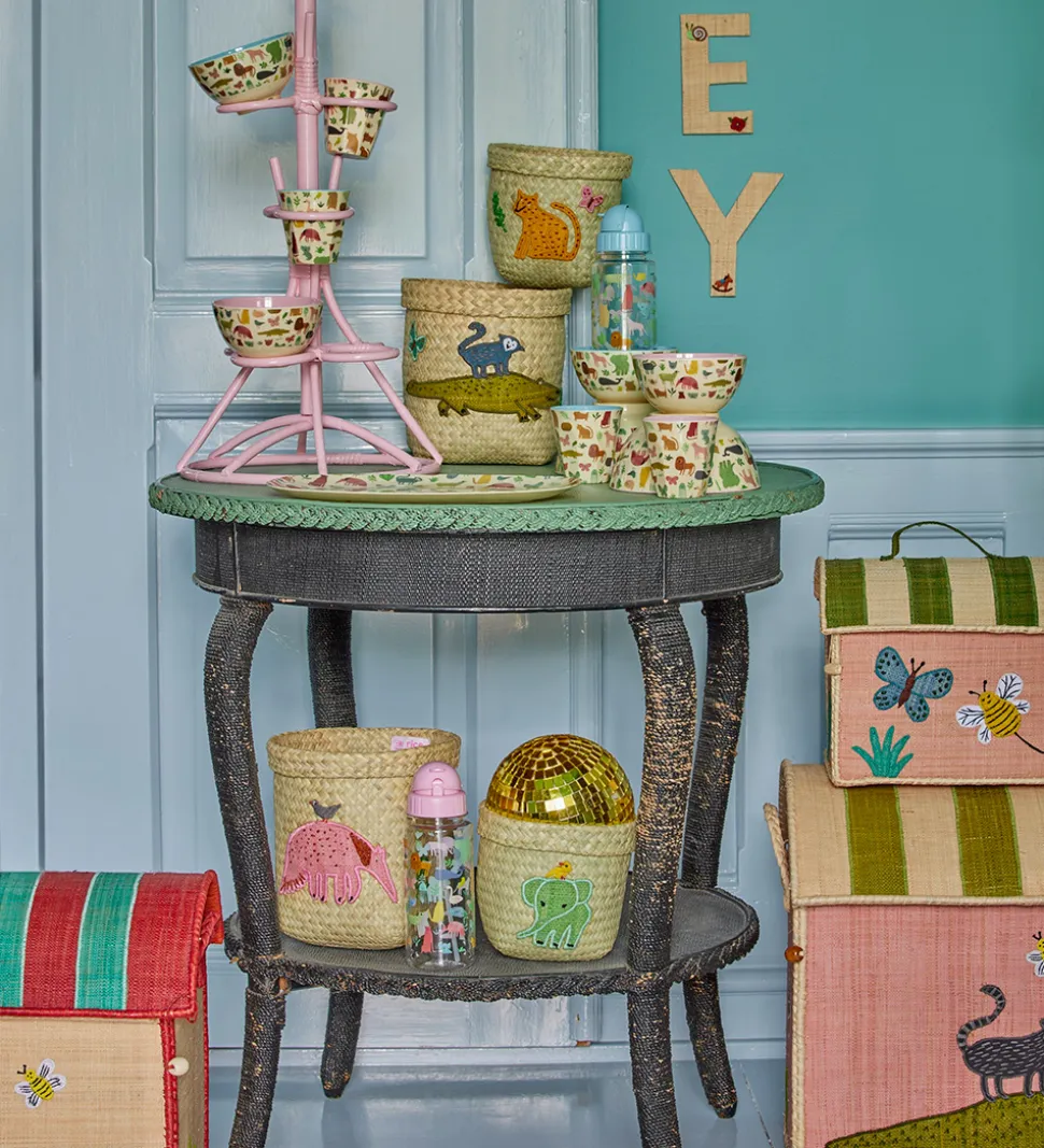 Rice opbevaringskurven består af ét stort rum med plads til f.eks. bamser, legetøj eller andet og åbnes med et fastgjort låg. Låget har en bærehank i toppen, og der er snore ved hjørnerne, der hægtes på en perle, når låget skal holdes lukket. Opbevaringskuven kan både bruges til opbevaring men også som et legehus.
