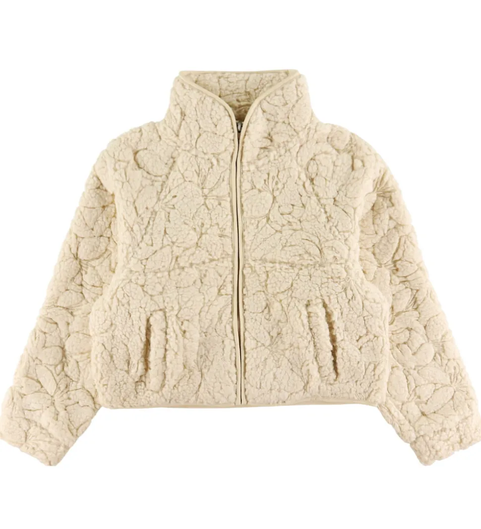 Lækker Roxy fleecejakke i cremefarvet teddyfleece med en dekorativ, organisk struktur.