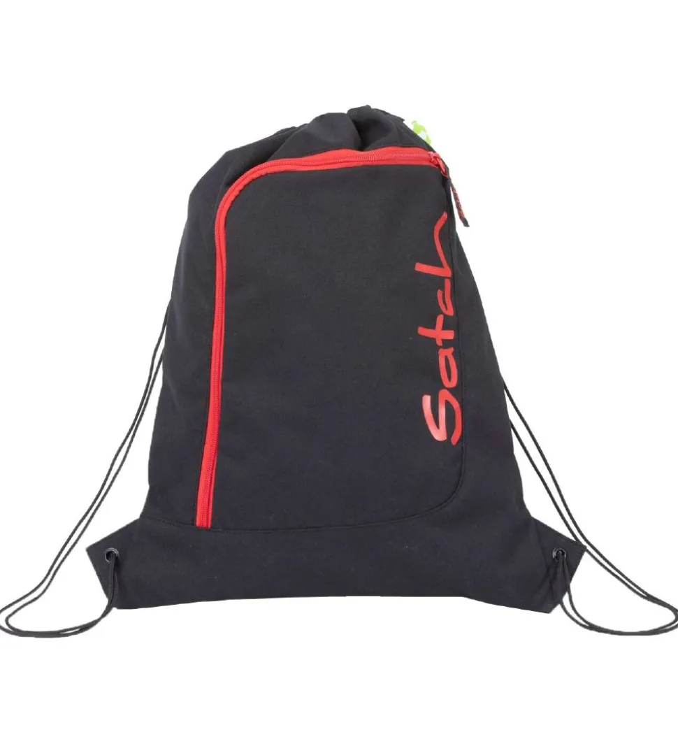 Satch gymnastikposen lukkes til i toppen ved at stramme snørerne ind. Fortil er der et mindre rum, som lukkes med en lynlås. Gymnastiposen kan klikkes fast uden på skoletaskerne fra Satch med remmen med klikspændet i toppen af tasken.