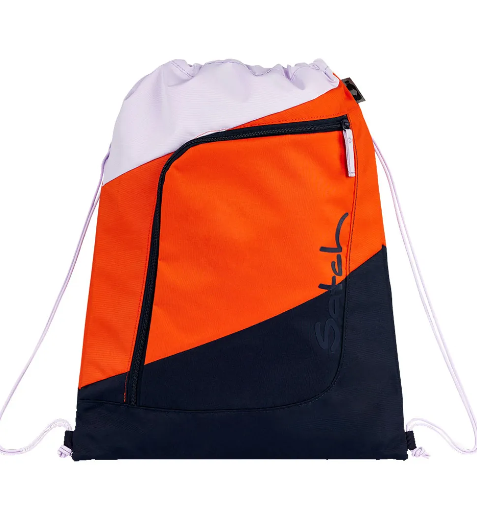 Satch gymnastikposen lukkes til i toppen ved at stramme snørerne ind. Fortil er der et mindre rum, som lukkes med en lynlås. Gymnastiposen kan klikkes fast uden på skoletaskerne fra Satch med remmen med klikspændet i toppen af tasken.