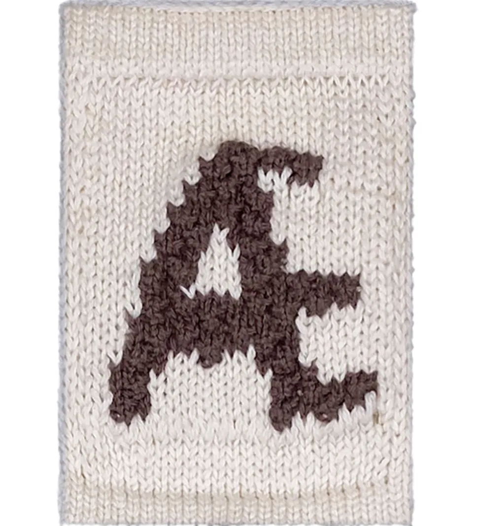 Fin Smallstuff bogstav i hvid med en strikket struktur og bogstavet “Æ” i brun. Med Smallstuff bogstavet kan du kombinere bogstaver og motiver og danne en sød flagranke med barnets navn.