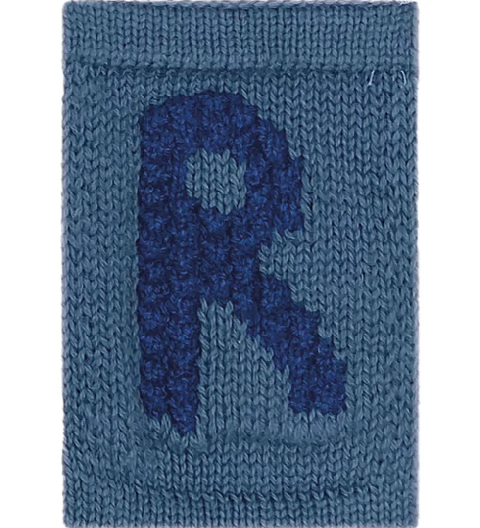 Fin Smallstuff bogstav i blå med en strikket struktur og bogstavet “R” i klar blå. Med Smallstuff bogstavet kan du kombinere bogstaver og motiver og danne en sød flagranke med barnets navn.
