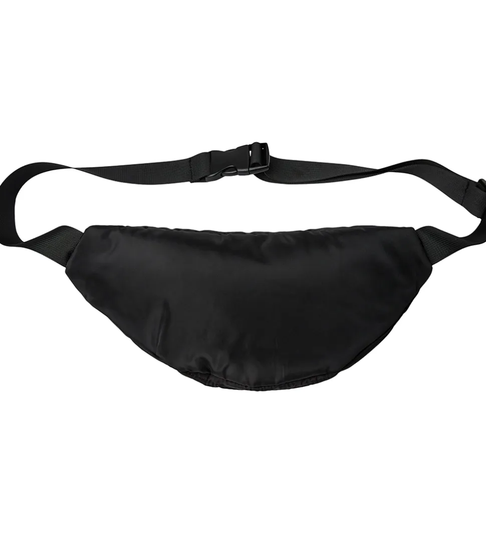 Yndig Sofie Schnoor bæltetaske i sort med vandrette syninger og et sort logo fortil. Bæltetasken er i et glatvævet, vatteret materiale.