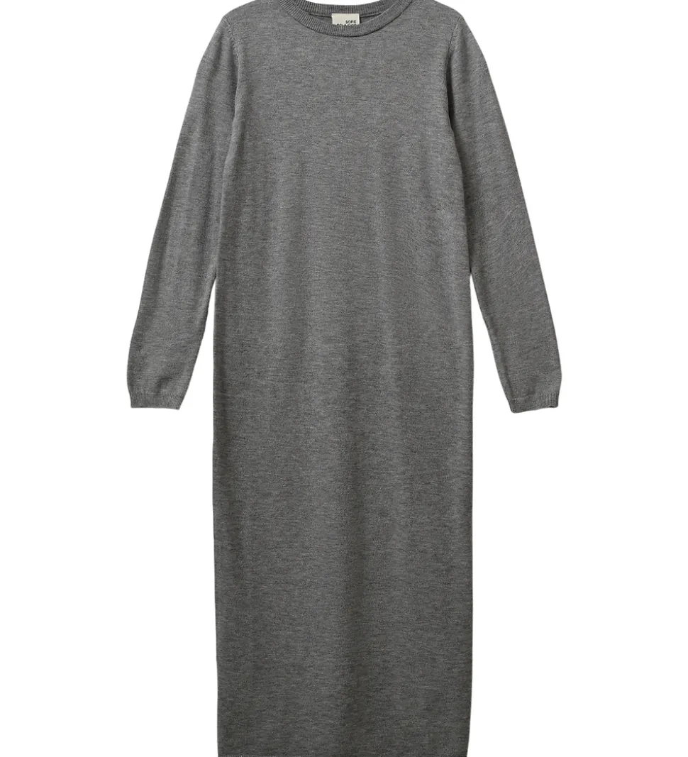 Elegant Sofie Schnoor kjole i en klassisk, gråmeleret nuance. Kjolen har lange ærmer og en rund halsudskæring, der giver et tidløst look. Sofie Schnoor kjolens enkle design gør den velegnet til forskellige lejligheder uden unødig pynt.