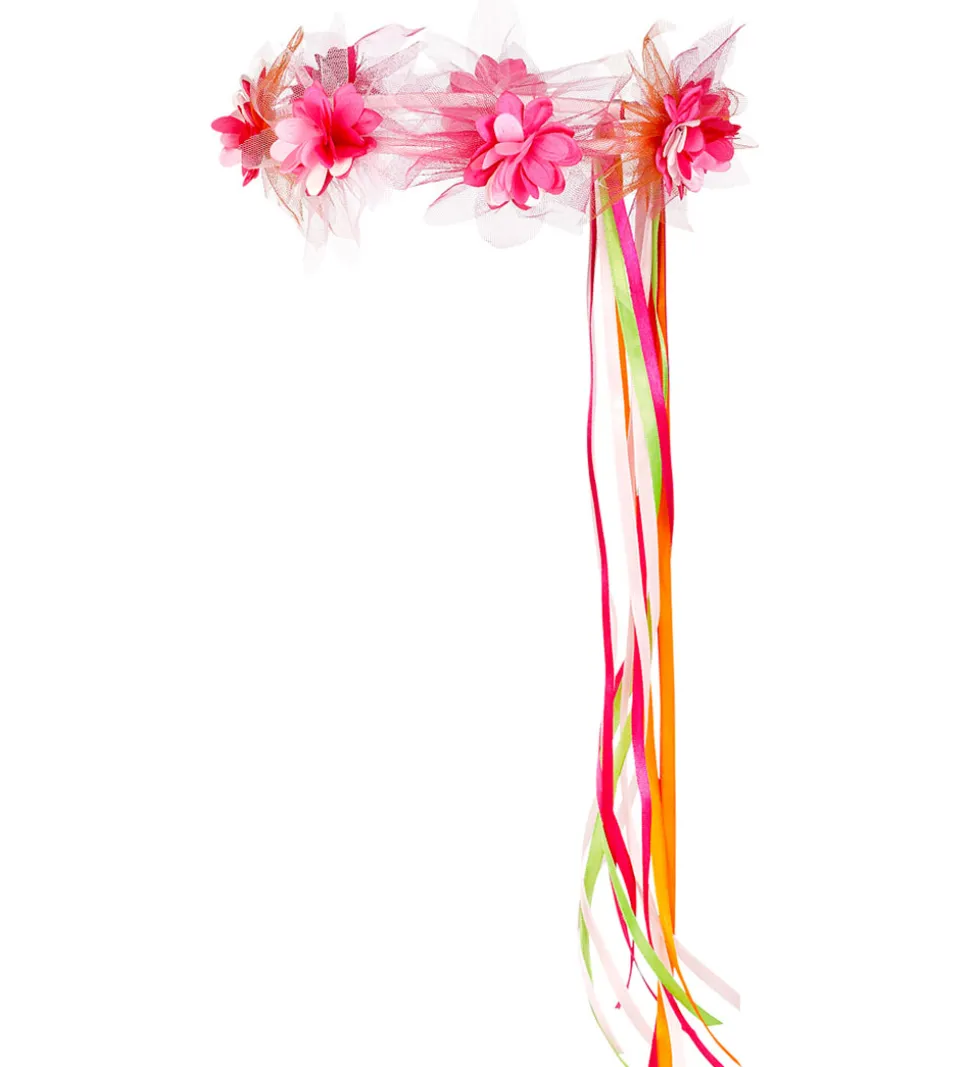 Souza hårbøjlen er i pink og orange nuancer dekoreret med smukke blomster samt lange, elegante bånd, der tilfører et charmerende udtryk, og er perfekt tilbehør til udklædningen.