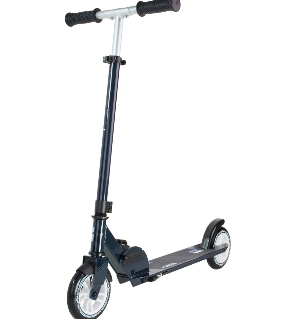 Smart Stiga løbehjul i en mørkeblå aluminium/stål-ramme, der kan foldes sammen.