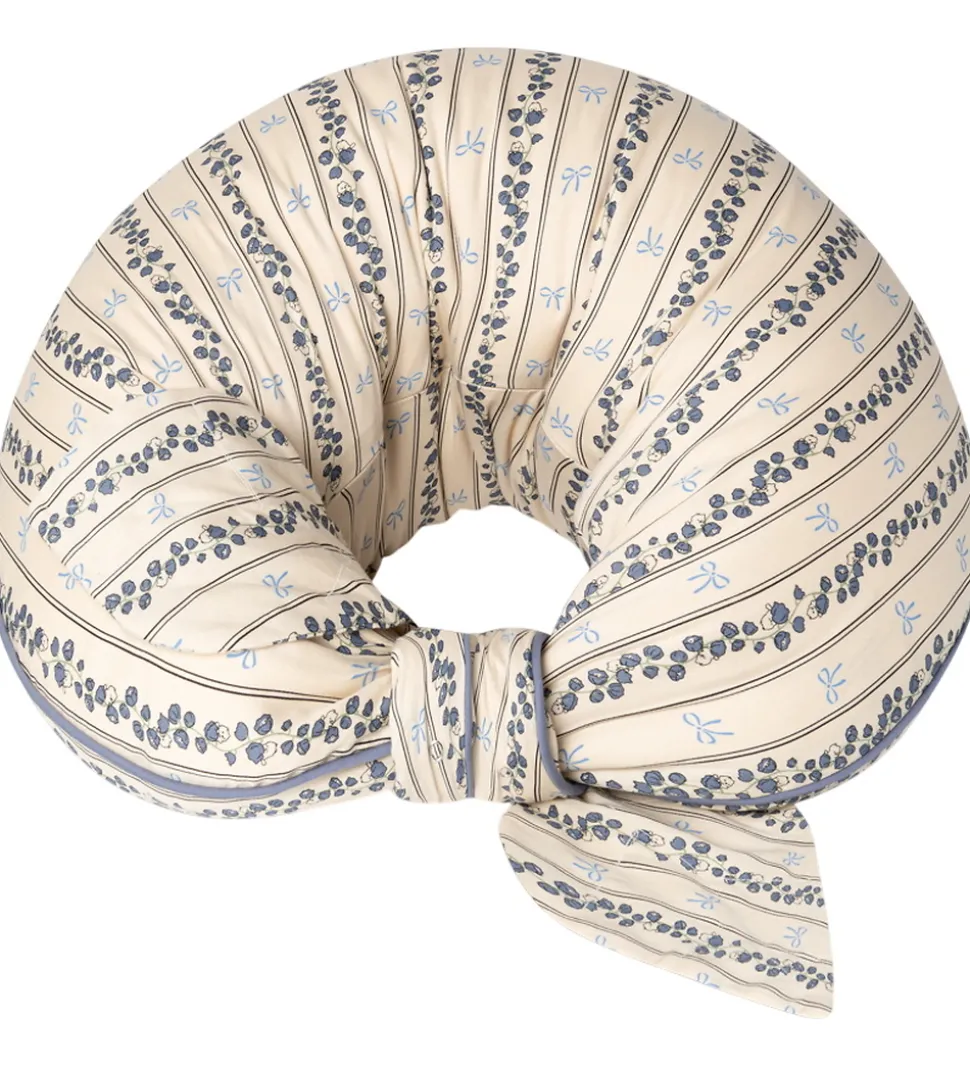 That’s Mine ammepuden er formet som en halvmåne, som giver en god støtte både under graviditeten og til den efterfølgende amning. Ammepuden har et langt og praktisk design, som gør det muligt at amme tvillinger. I hver ende af ammepuden er der påsat et lille blad, som fungerer som en nusseklud.