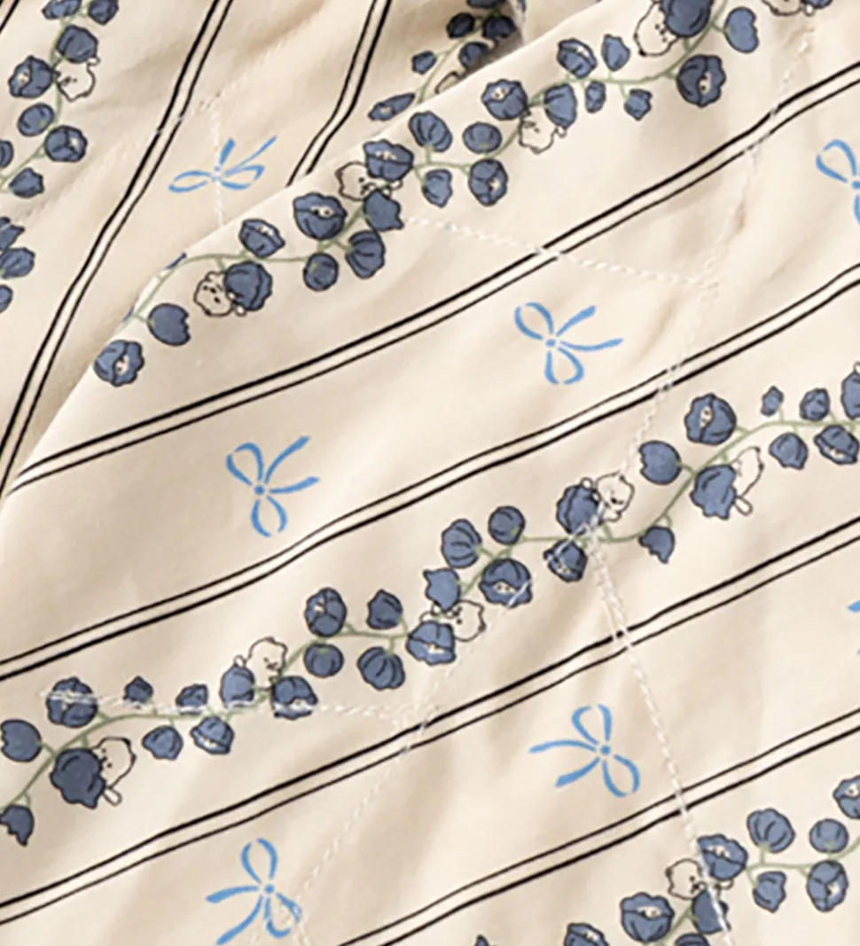 Smart That’s Mine ammepude i cremehvid med et flot print af blå blomster og sløjfer.