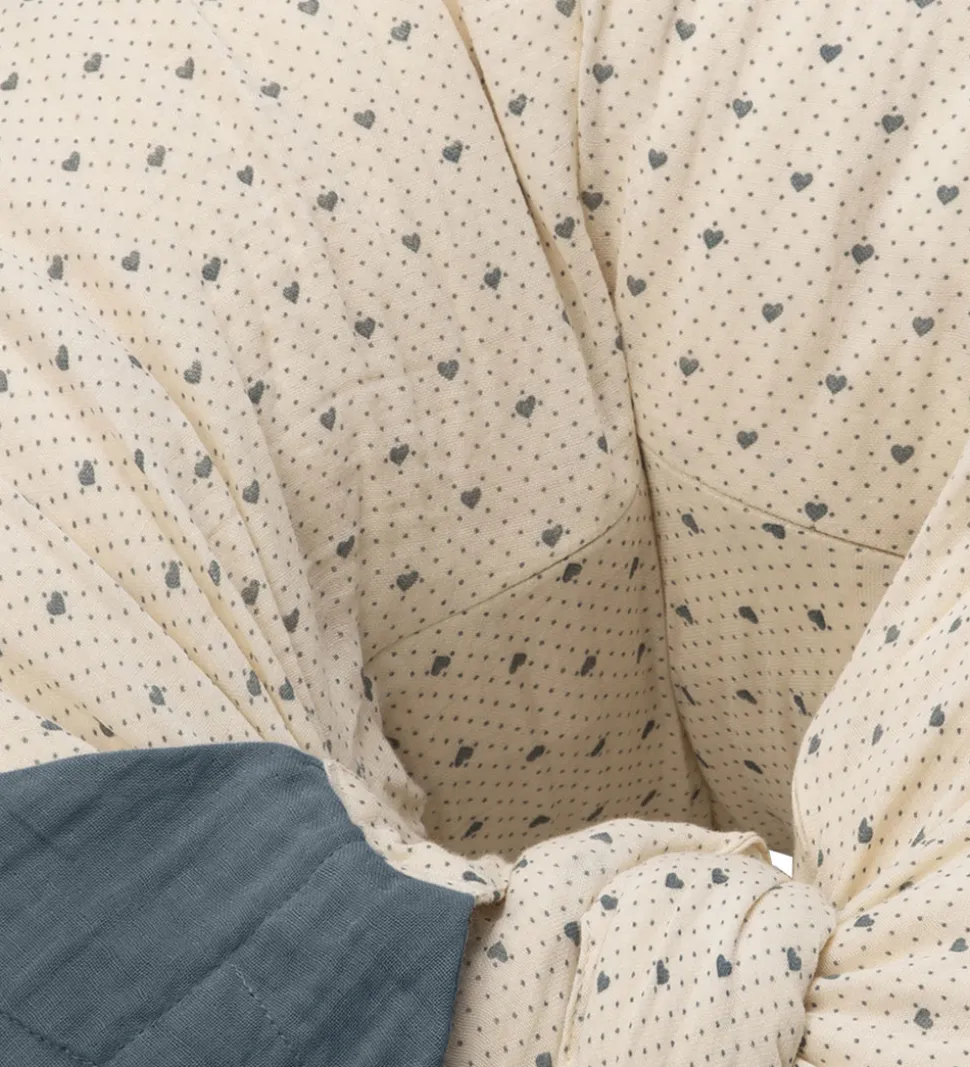 That’s Mine ammepuden er i blødt musselin og formet som en halvmåne, som giver en god støtte både under graviditeten og til den efterfølgende amning. Ammepuden har et langt og praktisk design, som gør det muligt at amme tvillinger. I hver ende af ammepuden er der påsat et lille blad, som fungerer som en nusseklud.