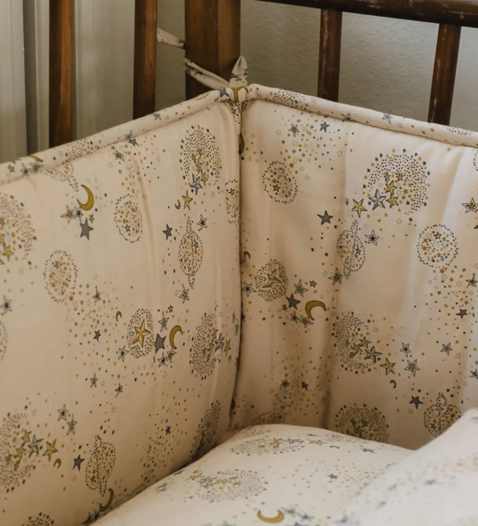 Thats Mine sengeranden placeres på indersiden af tremmesengen eller i kravlegården for at beskytte barnet mod kanter, tremmer og træk. Sengeranden har en let vattering af polyester, som skaber et hyggeligt og trygt rum for barnet. Sengeranden fastgøres ved hjælp af bindebånd.