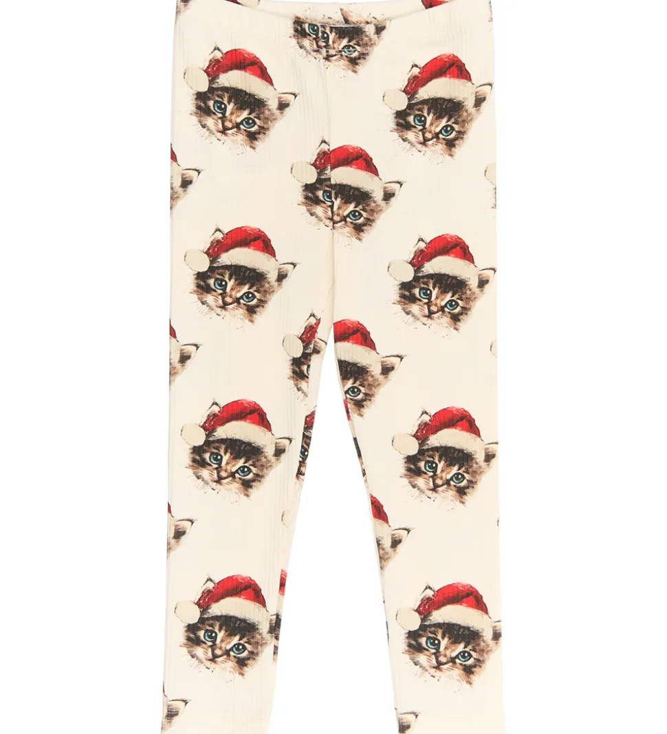 Behageligt nattøj fra The New bestående af en natbluse med lange ærmer og et par natbukser i cremehvid. Nattøjet har et charmerende katteprint, hvor kattene bærer nissehuer. The New nattøjet kombinerer hygge og stil.