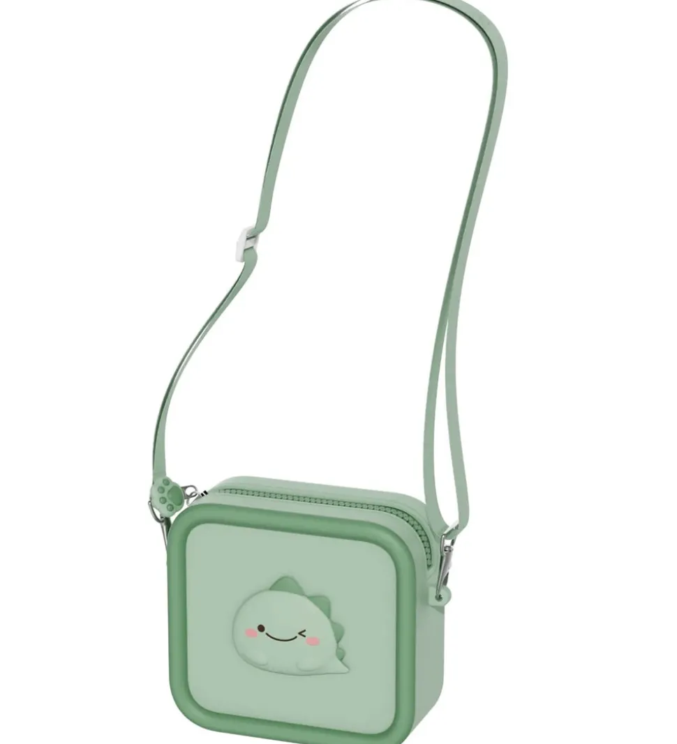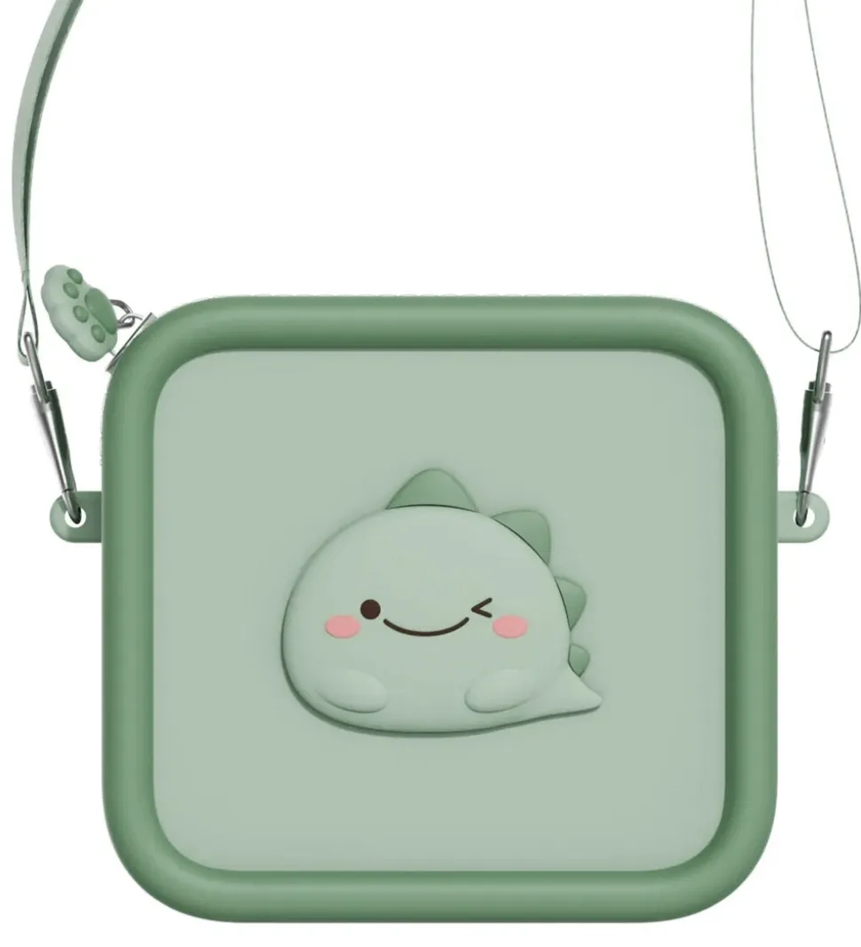 Skøn The Zoofamily kamerataske i grøn med en sød dinosaur på fronten.