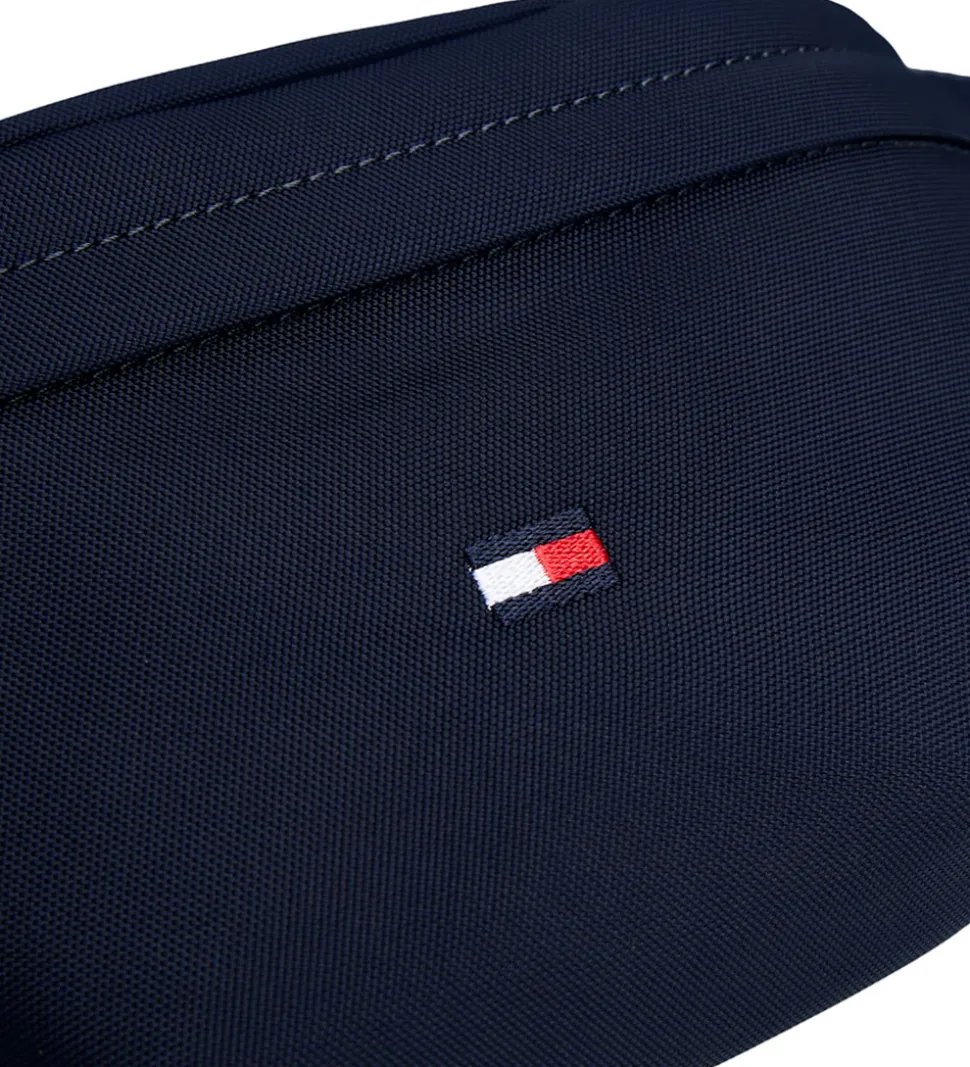 Fin Tommy Hilfiger bæltetaske i en stilfuld navyblå farve et med lille Tommy Hilfiger-logo på fronten.