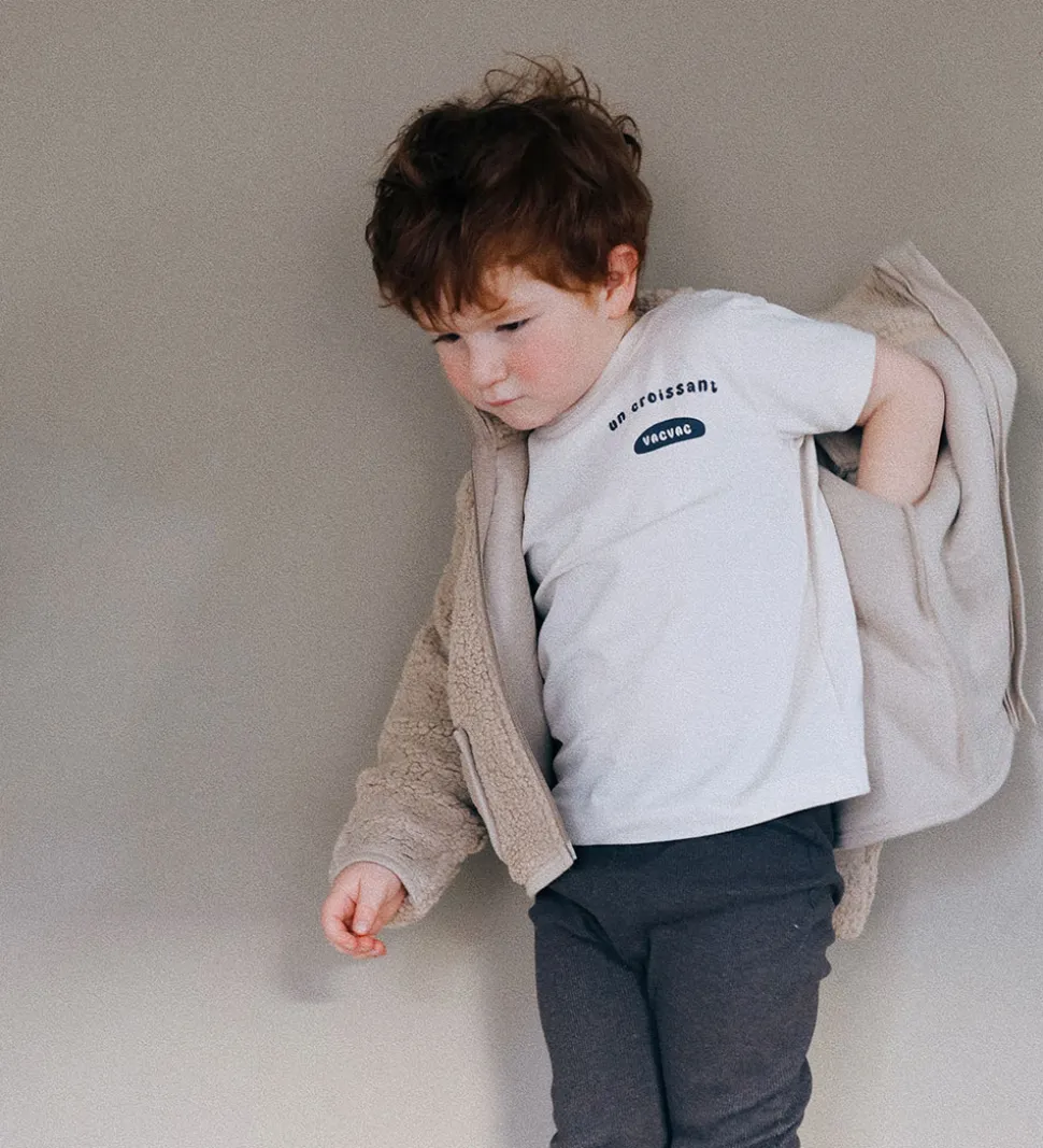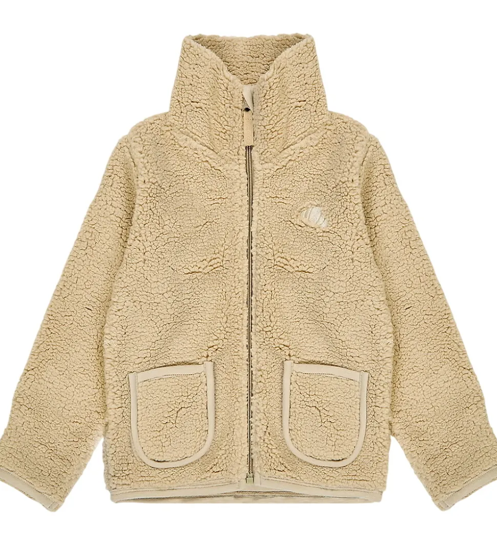 Flot VACVAC fleecejakke i en varm beige nuance. Fleecejakken er lavet af blødt teddyfleece, og den har en høj hals.
